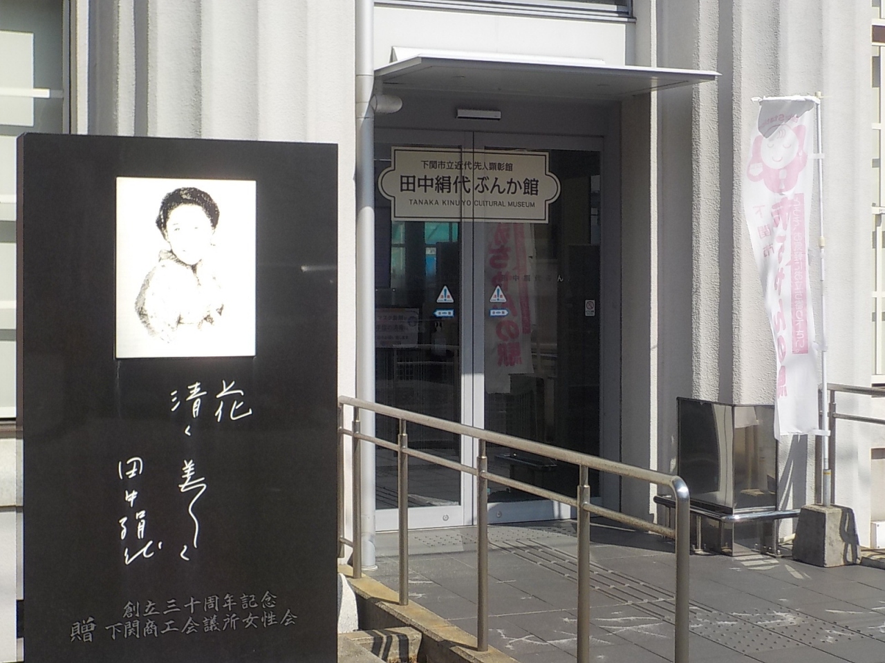 半世紀ほど前まで電話局電話課庁舎として使われていた建物を活用する形で「田中絹代ぶんか館」が開設されています。1階は「ふるさと文学館」として使われています。下関ゆかりの文学者や作品、下関が登場する作品を紹介しています。このぶんか館がある田中町で生まれた(北九州で生まれた説もある)林芙美子をはじめとして展示されています。2階は下関出身で「映画と結婚した」と語った大女優田中絹代の展示館です。出演作の台本、衣装、写真などかずかずの展示があります。自分たちの親の世代の女優さんですが、名前は何度か聞いたことがあり興味を持って拝見しました。