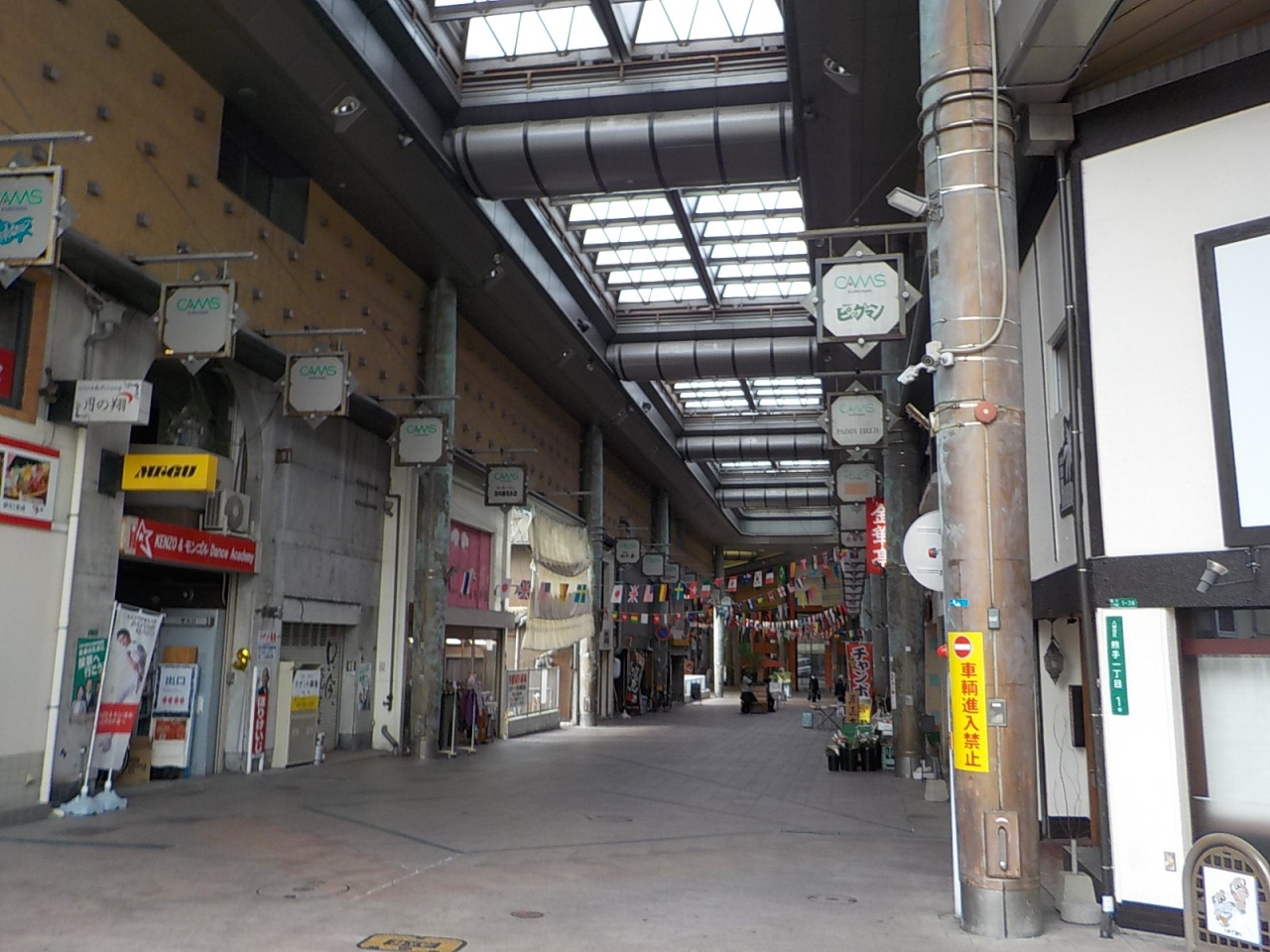 JR黒崎駅前には多くの商店街があります。その境界がはっきりわからないのですが、駅前の陸橋を下りると目に前のアーケードに"CAMS"と書かれています。ちょっと見上げないと気付かないかもしれません。黒崎駅からまっすぐ南方向に伸びている商店街です。この商店街はアーケードも新しく明るい雰囲気で、オシャレな洋服店、時計屋などが並んでいます。長崎街道であったくまで通りが交わりますが、こちらとは全く異なる性格を持たせて特色づけをしているようです、