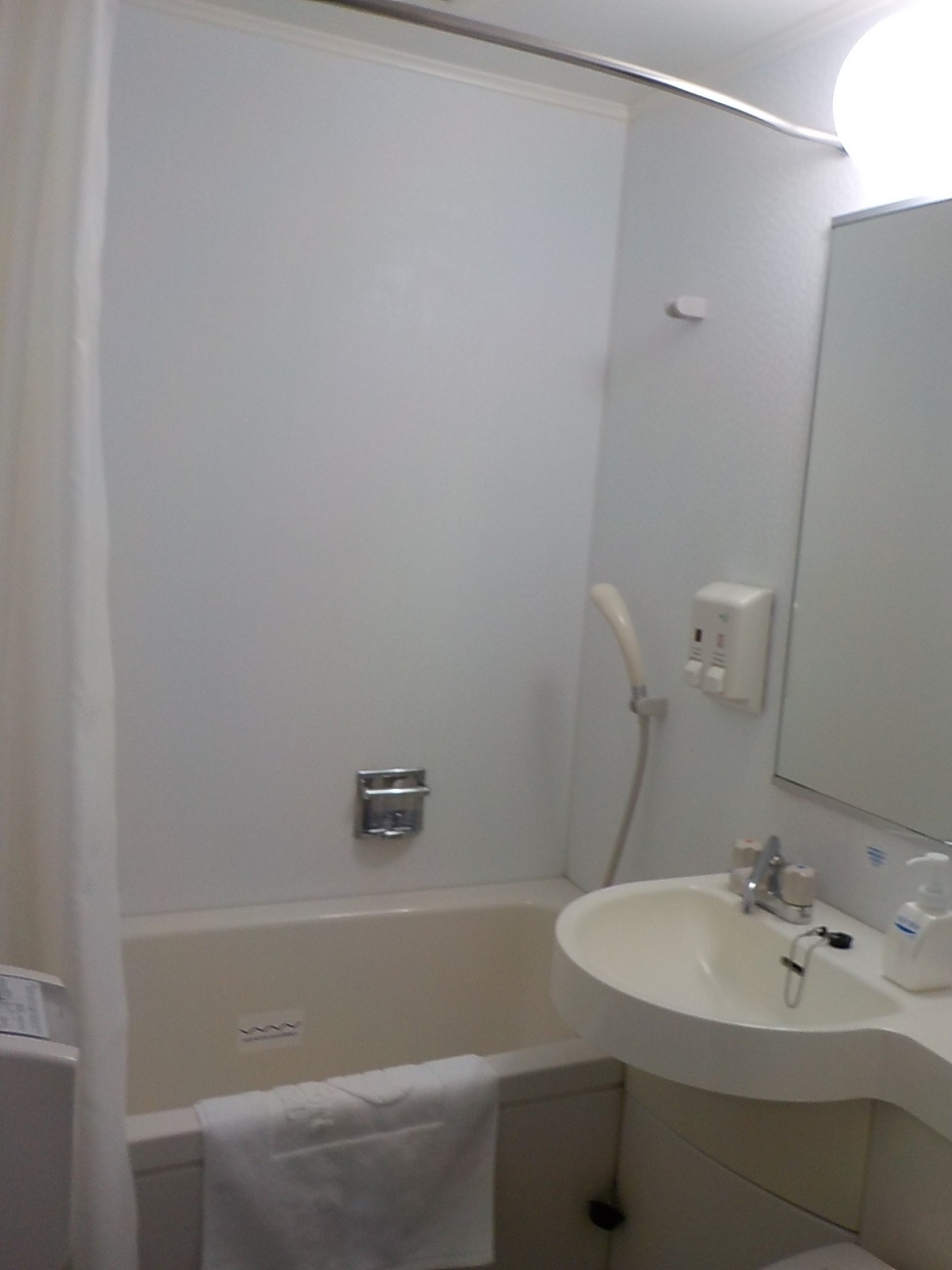 - ビジネスホテルのようなユニットバスですが、予想以上に湯舟が大きく軽く足が伸ばせました。