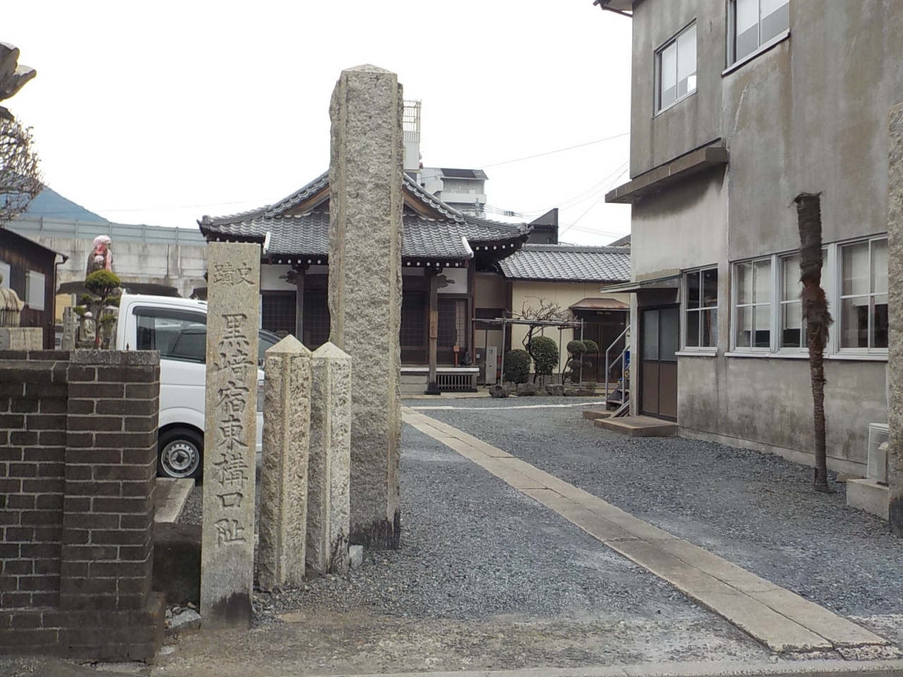 黒崎城が廃城になった後に黒崎宿を挟んで宿場の東西の出入口に構口が置かれました。構口とは番所を設けて街道を往来する旅人を監視する番屋です。黒崎宿を通り過ぎるには二か所の番屋の前を通り過ぎる必要がありました。4人の役人が24時間交代でこの構口に詰めていました。現地は海蔵庵というお寺の門の所に東溝口跡をしめす石碑と説明が残されているだけです。