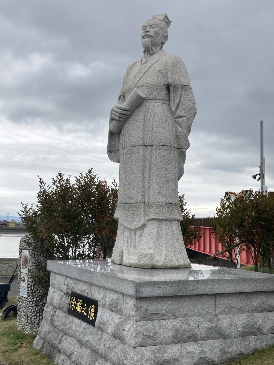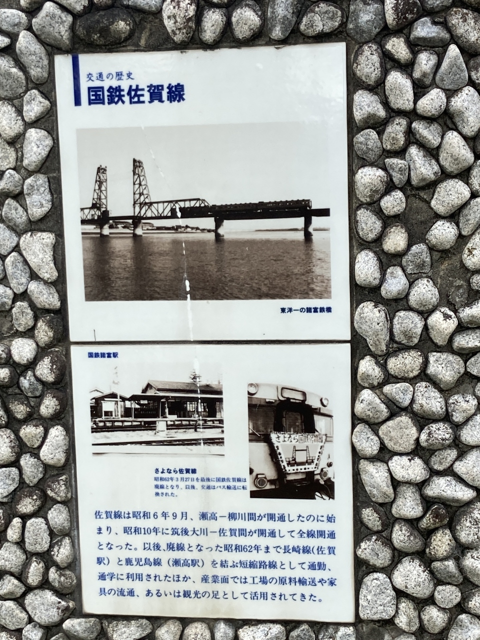 昭和10年に竣工した旧国鉄佐賀線で利用していた橋です。長さ500mほどあり、橋の中央付近にある鉄塔は高さ30mほどあります。この鉄塔の間に架けられた長さ20m余りの橋げたがワイヤーで巻き上げられて上下するようになっています。橋げたが上がっていると、十分な高さができるので大きな船も容易に航行できます。佐賀線が廃線になって、現在は遊歩道yになっています。歩行者の通行を一時ストップして、この橋げたを上下してもらえます。また佐賀県側には徐福伝説の徐福像や昇開橋の資料なども展示されています。