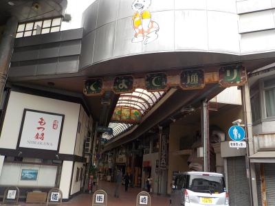江戸時代は長崎街道だったところがくまで通り商店街として使われています。黒崎宿の東構口と西搆口間にあるので黒崎宿だったと推測します。ペンキが薄くなってさびれた感じのアーケードの上にはこの街道を往来した歴史上の人物が描かれています。坂本竜馬や西郷隆盛などもその中の人です。アーケードは新しい部分もあるので、活性化して利用してもらいたいと思います。