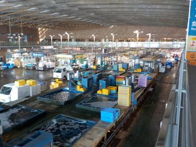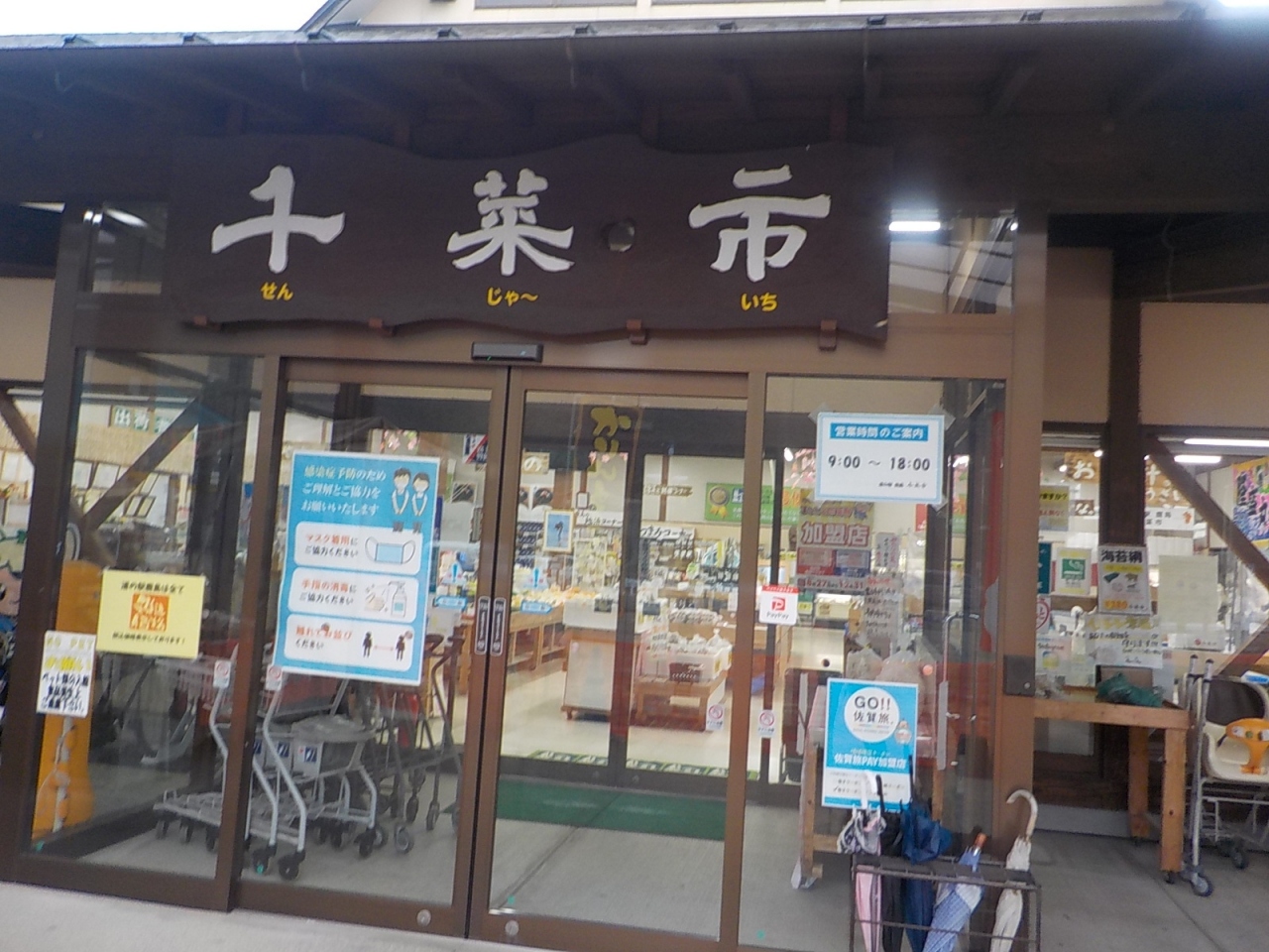 土産物を買おうと思って福岡に戻る途中に立ち寄りました。シーズンオフなので利用者が少ないのでしょう、シーズンが始まる前にと思って駐車場の整備工事がされていました。おそらく半分くらいは工事で使用ができませんが、それでも余裕がありました。カキ焼きのお店の前を通って「千菜市」(せんじゃ~いち)という物産販売所に行きました。内部は適度な広さがあり、地元農産物、海産物、お酒などが並んでいます。決して大きな販売所ではないので、品数は多いとまでは言えませんが十分です。野菜類、カキ、ワタリガニを買い福岡まで戻りました。