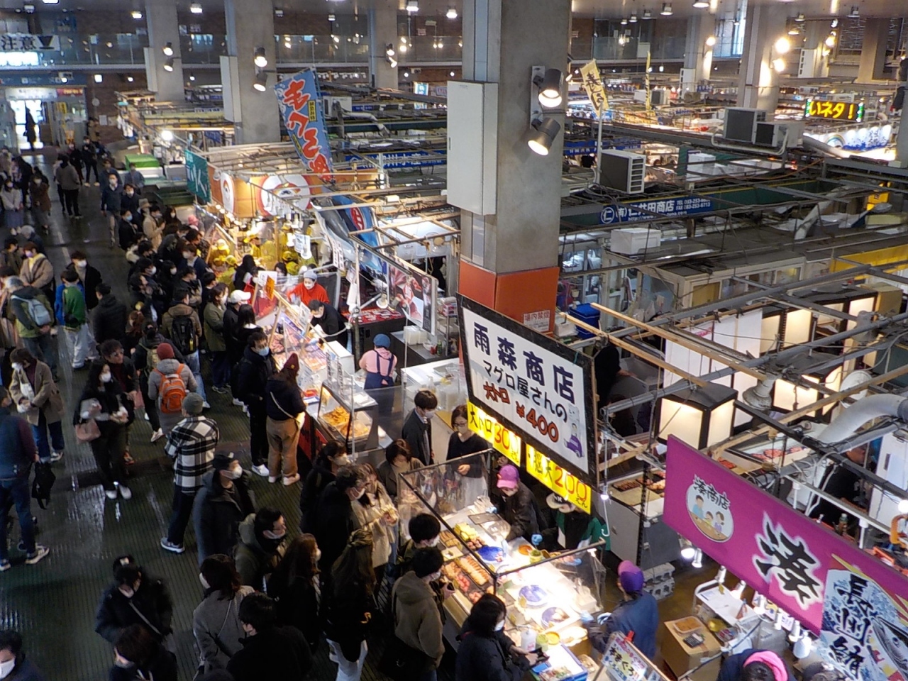 海産物を加工した土産物屋さんも小売店が並ぶフロアにあります。- 旅行時期