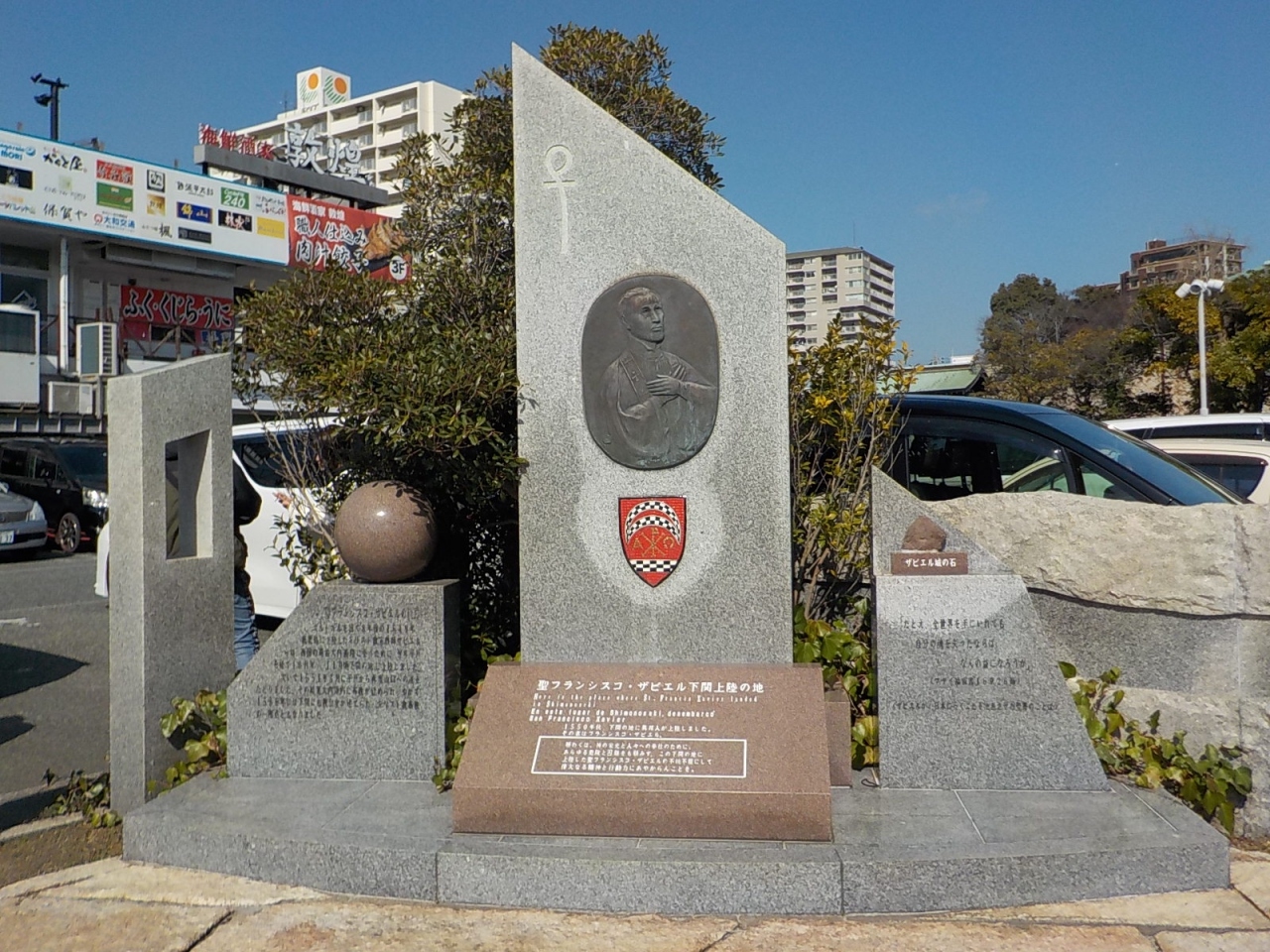 唐戸市場から唐戸桟橋に行く途中で見つけました。ザビエルが来日後450年記念として建てられたものです。実際はもう少し海岸線が奥にあったので、唐戸市場北側にある亀山八幡宮あたりに上陸したそうです。ザビエルは1550年、京都御所に向かうために九州から下関に上陸しました。どういう理由かザビエルは京都に行かず、大内義隆からキリスト教布教の許可を得て数か月宣教活動を行ったとされています。