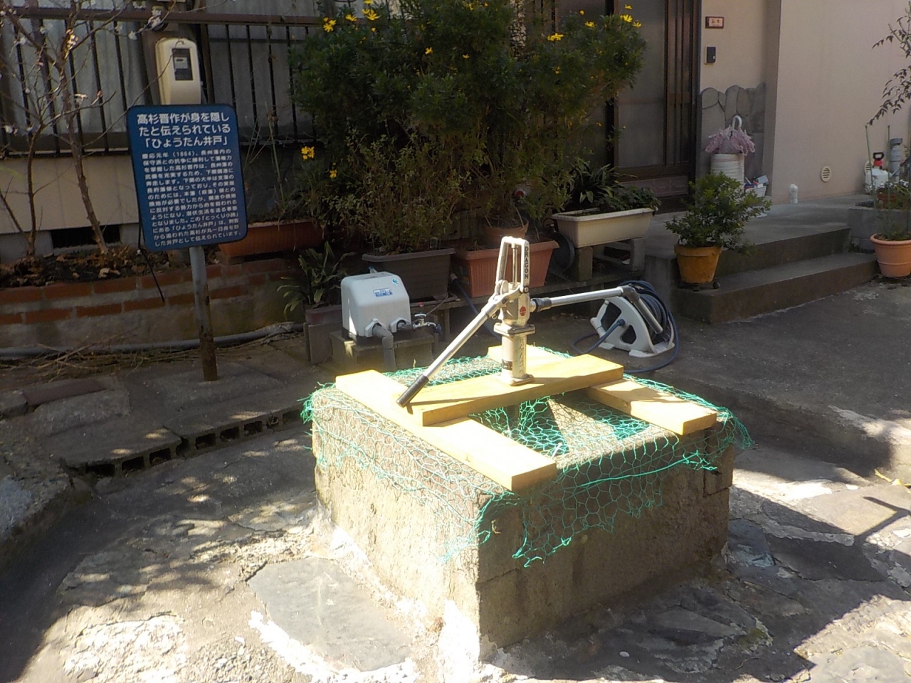 長府藩士らに襲撃されて高杉晋作はこの井戸の中に身を隠したと言われています。