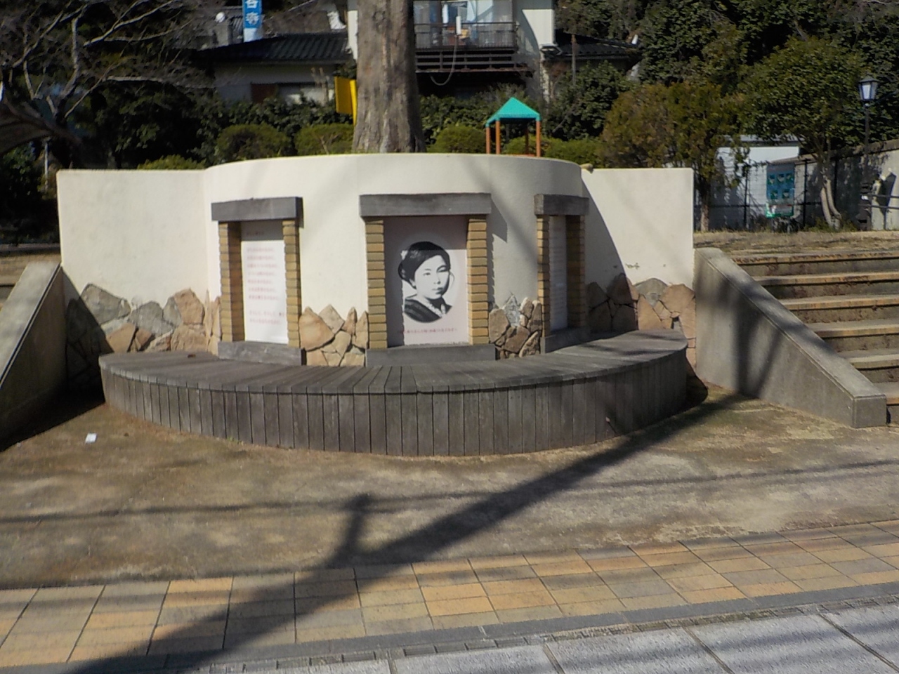 金子みすゞが童謡を書き始めたのは20歳頃からですが、作品を雑誌に投稿し鮮烈なデビューをします。西條八十からも高い評価を得て素晴らしい活躍を見せますが、結婚した夫は文学に理解がなく、その後には病気、離婚と不幸が重なり26歳でこの世を去ります。児童文学者矢崎節夫の努力によって、金子みすゞの作品が集約されて、いまでは小学校の国語の教材にまでなっています。彼女の作品を目にすると、心が和んでくるので大好きな作家のひとりになっています。この顕彰碑は金子みすゞが移り住んだ上山文英堂のあった場所に近い南部町の寿公園にあります。