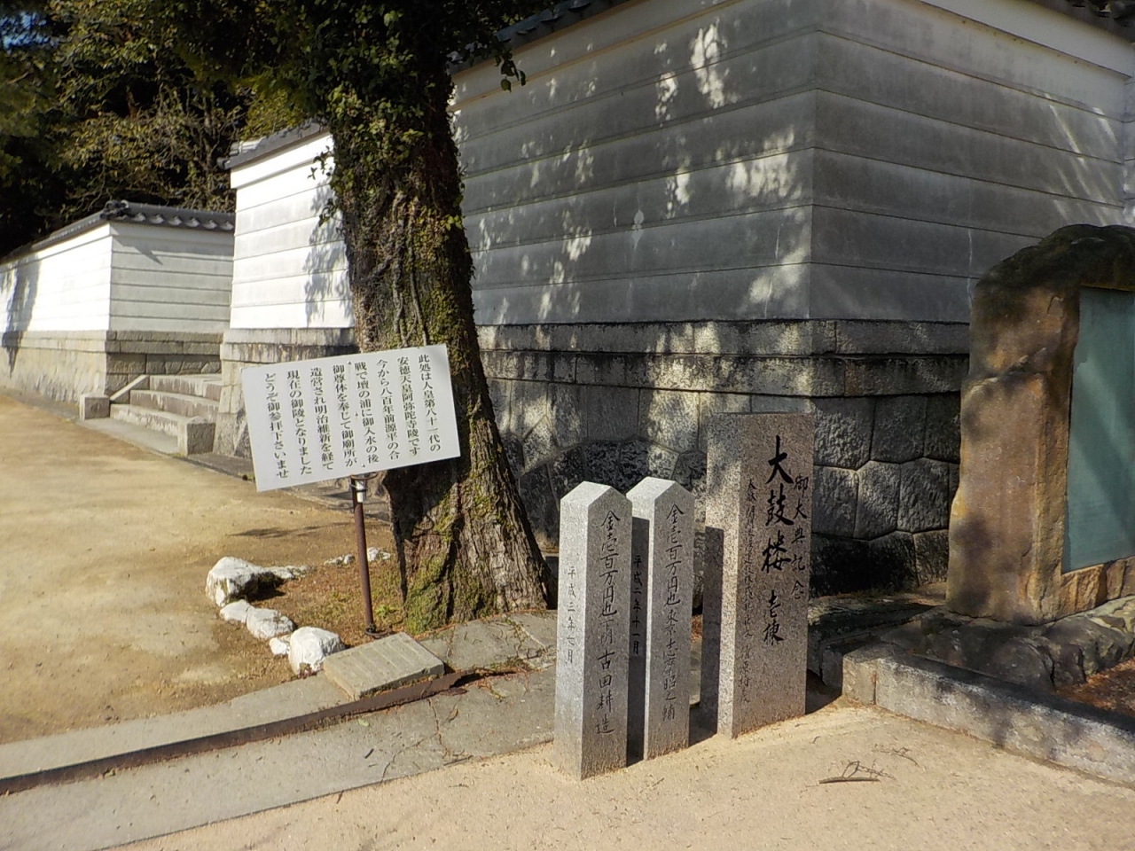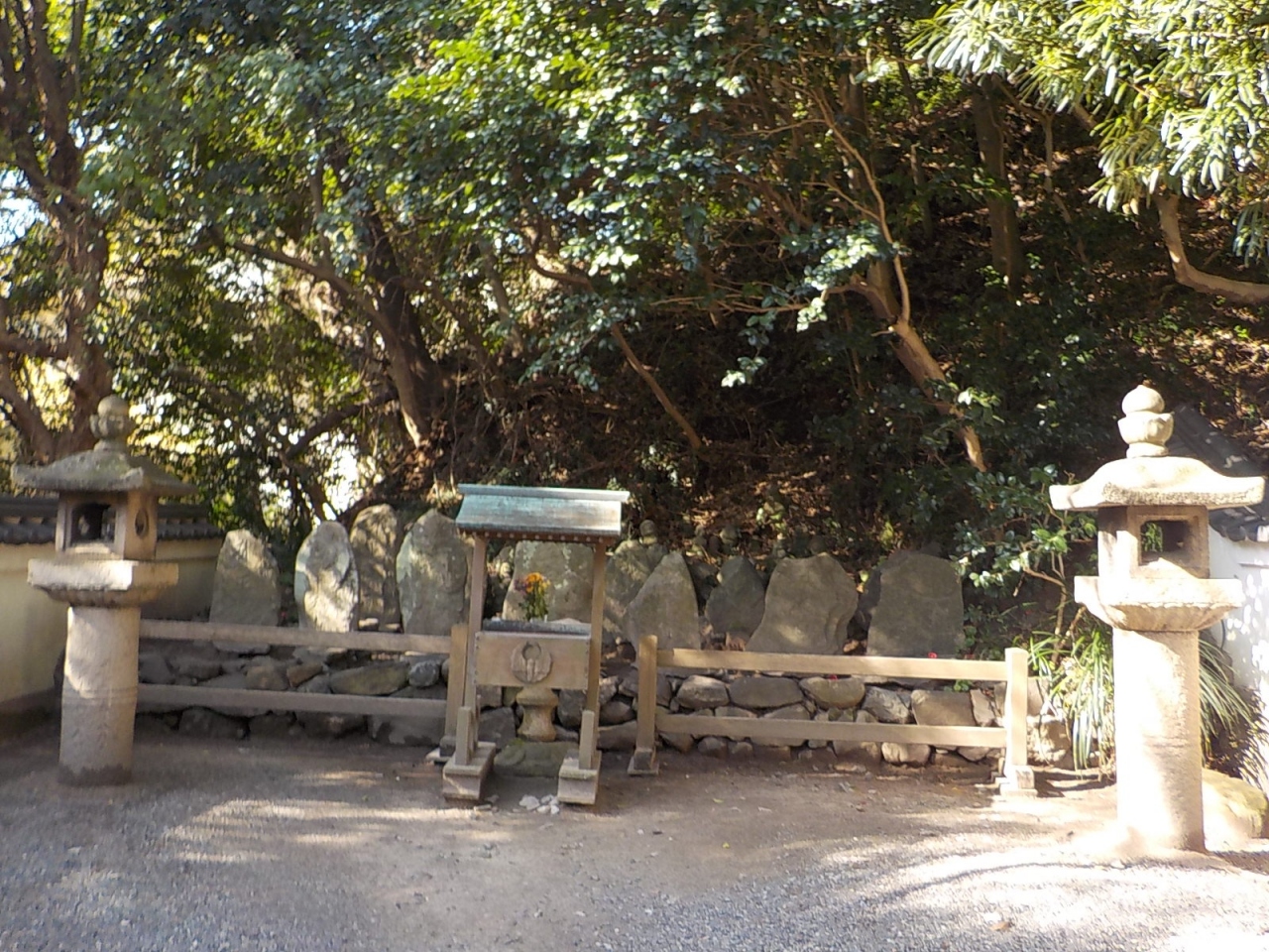 赤間神宮の境内、拝殿の左手の宝物殿の前を抜けて行くと、源平合戦壇ノ浦の戦いで敗れた平家一門の墓があります。平知盛、平教経、二位尼平時子などの平家一門の墓ですが名前に「盛」の付く武将は6人なのに、なぜか「七盛塚」です。お墓は二列に整然と並んで14基あります。すぐ横に耳なし芳一像を安置する芳一堂があります。