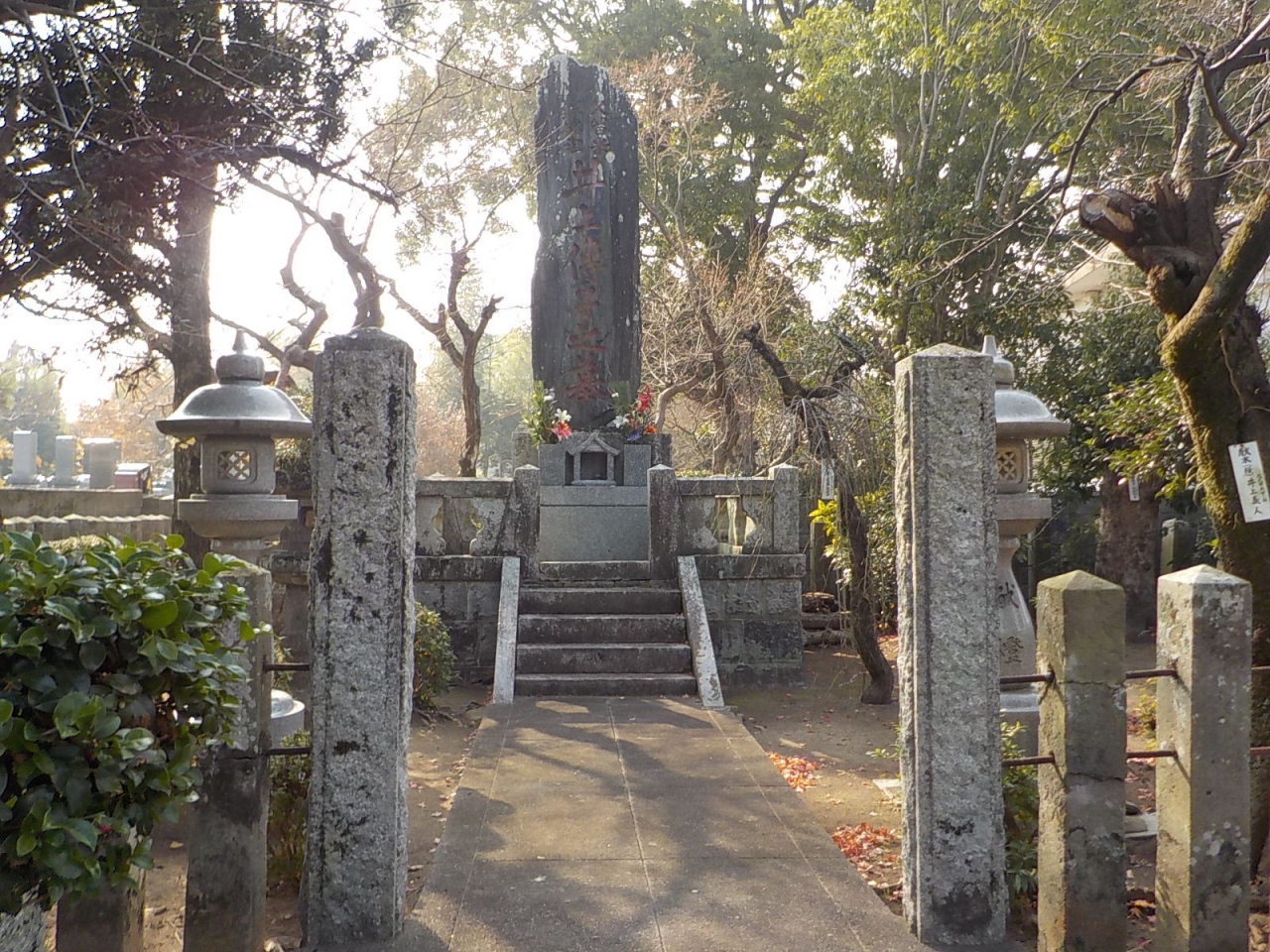 - 有名人物のお墓だから凄い大きなものと想像していましたが全く違って平凡なお墓でした。
