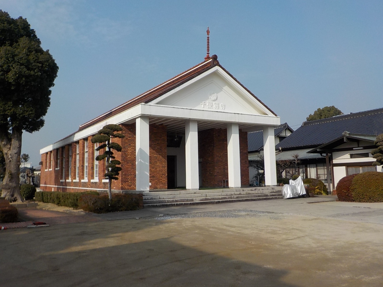 久留米市寺町の伝統的な寺院建築が多い中でひときわ目立つ外国の教会のような本堂に驚きました。しかしこの寺は曹洞宗の寺として1610年に創建されたもので長い歴史を持っています。門前のお寺の紹介文を見ると、ブリヂストンの石橋家の菩提寺にもなっていて、この斬新なデザインの本堂は1959年にブリヂストン創業者石橋正二郎の寄贈によるものです。同じく2代目社長石橋幹一郎により坐禅堂は寄贈されていますし、アサヒコーポレーション3代目社長石橋徳次郎氏により梵鐘及び鐘楼堂が寄贈されています。