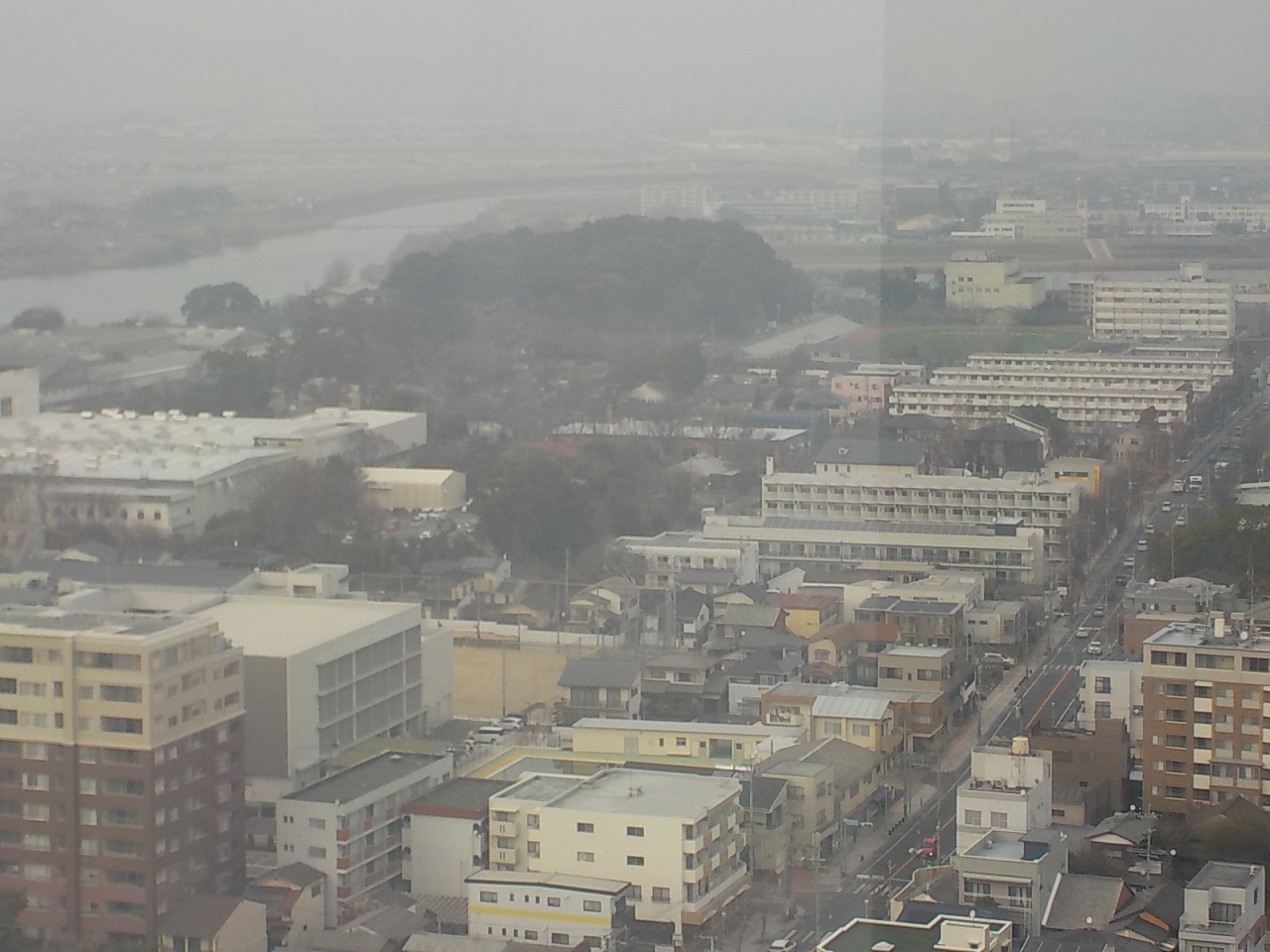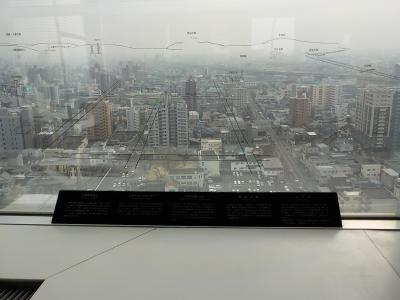 久留米市市役所に書類を受け取りに行った時に、曇り空でしたがついでに20階にある展望室まで登りました。久留米市役所は東西に細長い建物ですが、1階ロビーの両端にエレベーターがあり、自分で操作して20階まで登ります。北側と南側の外壁に沿って展望室が設けられていますが、展望のよいのは北側だと思います。晴れていれば、やや西方向に佐賀県の天山、福岡と佐賀の県境にある九千部山、北に宝満山、三郡山、北東に古処山、東には耳納山地などが望めます。また足元には久留米市街地と九州一の大河筑後川のゆったりした流れが見えます。