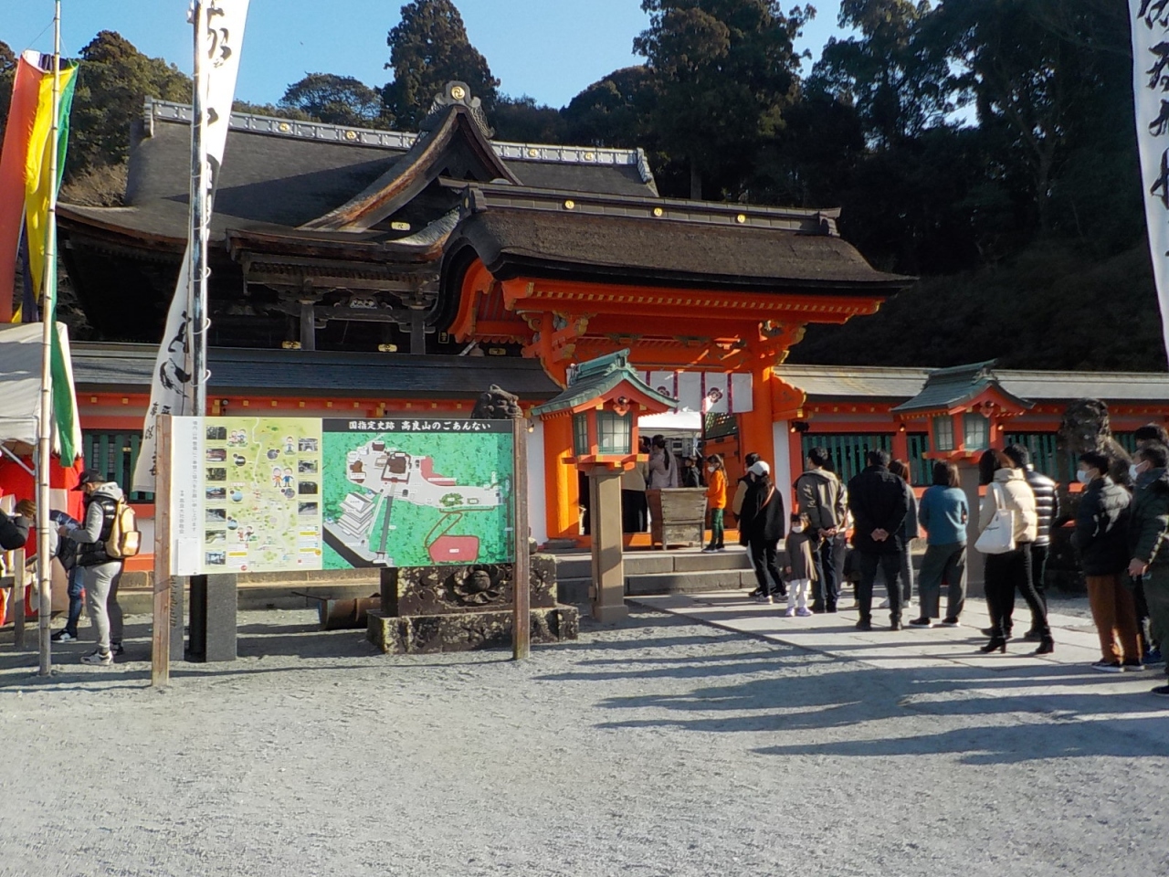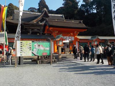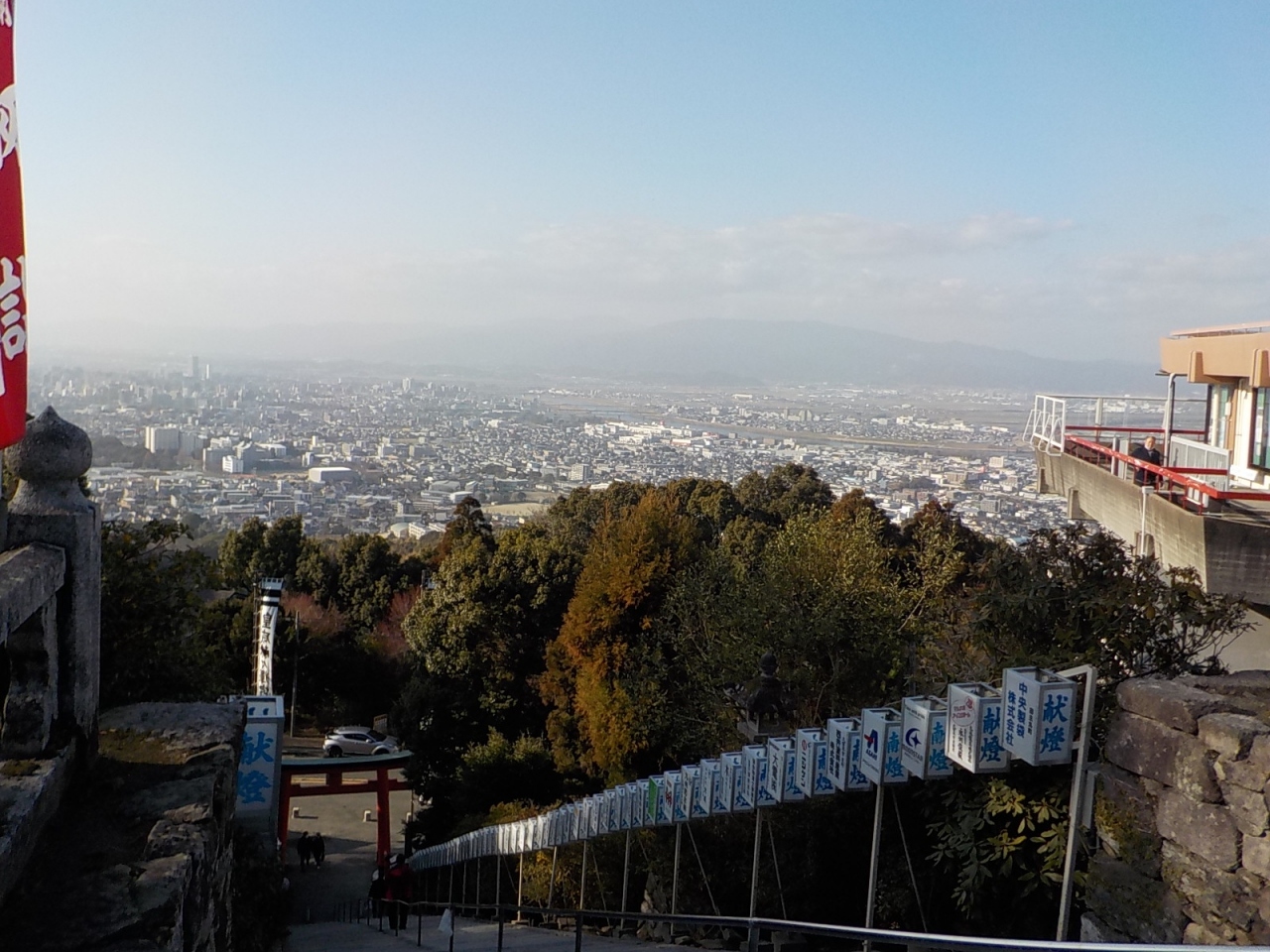 耳納山地の高良山頂上に近い所にある高良大社は久留米市街地、筑後平野、筑後川を望める絶好のビューポイントでもあります。お正月の初詣の混雑を避けて行ったつもりでしたが、山頂近くになると細い山道は渋滞していました。少し下の駐車場が運良く空いたので、そこに駐車して本殿前の石段(100段あまり 階段を上るのが大変な人はリフトもあります)を息を切らせて登りました。登ったところから絶景が見られましたが、本殿前にはお参りの方の列ができていました。並ぶのが嫌なので、高良山頂上まで歩いてきました。再び本殿に戻ったら参拝を待つ列もほとんどなくなっていたので、長時間待つこともなく参拝できました。筑後一の宮と呼ばれる格式高い神社は1600年の歴史を持つ神社です。また厄除・延命長寿のご利益があると言われています。
