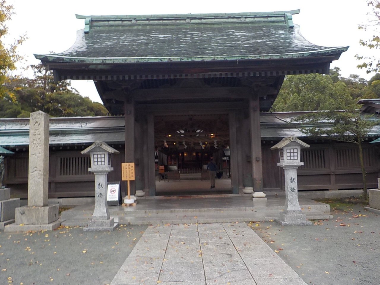 辺津宮は福岡県宗像市田島にあります。宗像大社の三つの宮の一つです。駐車場に車を停めて、一の鳥居をくぐり参道を進んでいくと二の鳥居があり、心字池の石橋を渡ると神門があります。その向こうに本殿が見えてきます。最初の社殿は12世紀には会ったようですが、再三焼失し、現在の社殿は16世紀末に造られたもののようです。ご祭神は市杵島姫神です。辺津宮は宗像三女神信仰の中心地になっています。