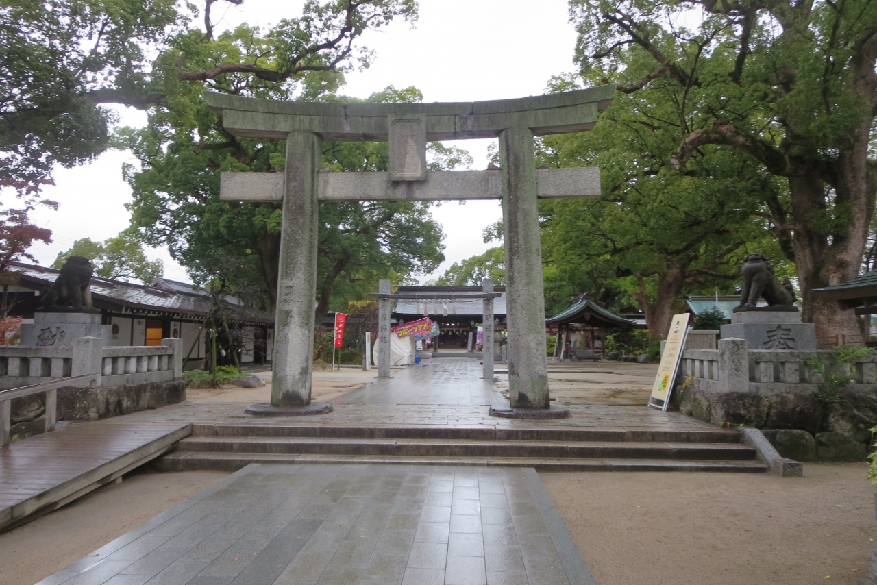 神功皇后、勝村大神、勝頼大神をご祭神とする神社です。商売繁昌、交通安全、家内安全のご利益があるとして、多くの参拝者が訪れる神社で、お正月の福岡では三社参りの神社になっています。本殿に架けられている大注連縄は日本一の大きなもので、長さ11m、直径2.6m、重さ3tあります。日本一の大鈴、大太鼓も有名です。神社の一番奥にある「奥の宮不動神社」は古墳で、馬具、刀装具・瑠璃玉など多くのものが発見されています。最近ではCMで使われた神社より参道の先にある相島に夕陽が沈み、光り輝く道となる「光の道」が有名になっています。