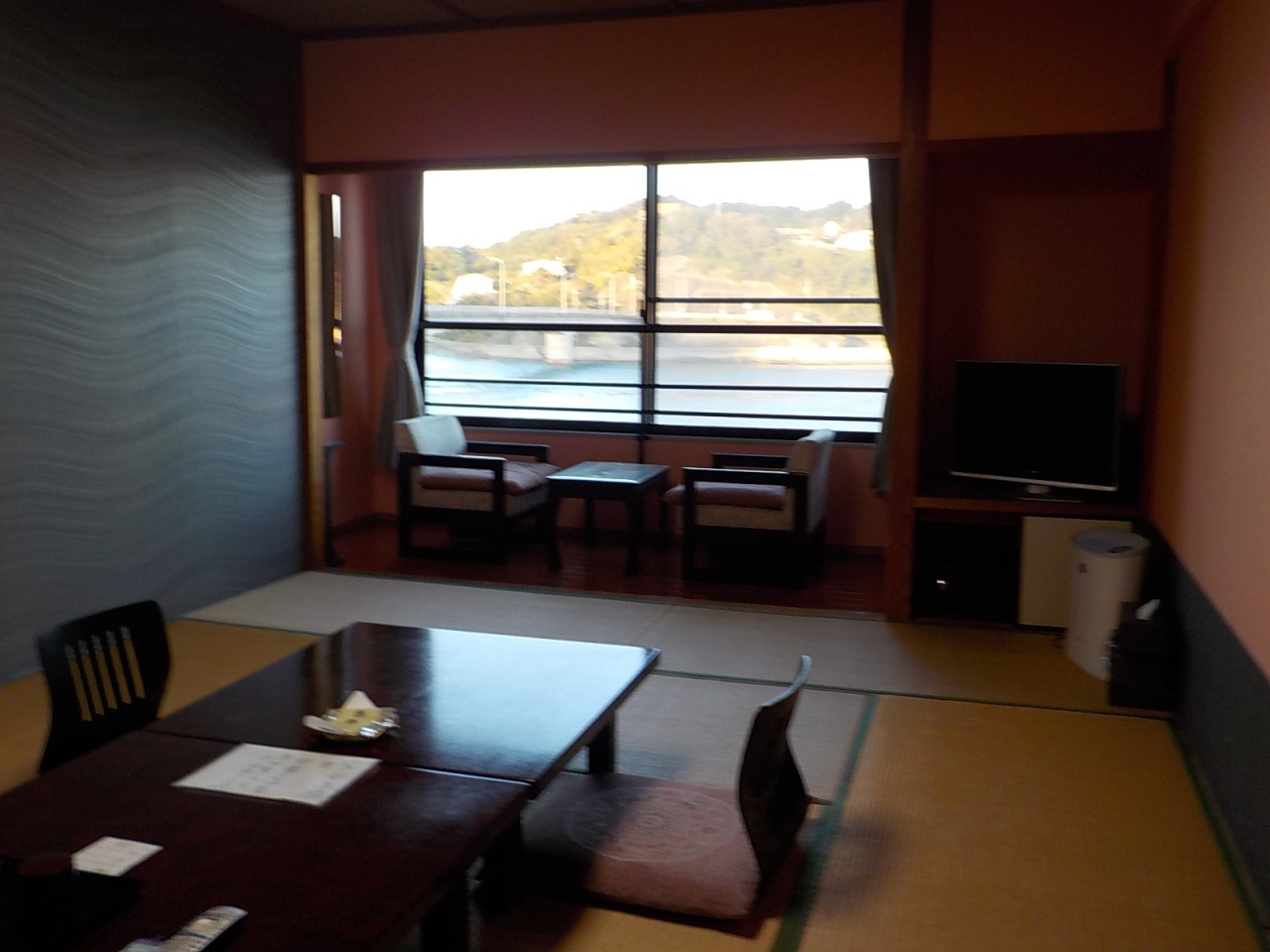 天草の大矢野島にある「天草四郎ミュージアム」から野釜島の方に入って行きます。野釜島の橋を渡ると、島を一周するように車で進むとこの旅館に着きます。こじんまりとした旅館のように見えますが、4階建ての鉄筋コンクリートの建物です。「天草活魚と真心の宿」と書いてある通り、料理は手抜きがないうえに、食べきれないほどの量があります。刺身は新鮮でコリコリした食感です。鮑やタコのステーキもやわかくて食べやすかったです。朝ご飯もおかずの種類が多くってとっても美味しかったです。部屋は二人で12畳の和室。決して新しい建物ではないですが、リニューアルがしっかりされていて清潔感があります。部屋からはすぐ下が海で波の音も聞こえます。お風呂に行くのは別棟ですので、屋外を通るときに寒かったです。8人ほど入れる湯舟に5人が同時に使える洗い場あります。この日は4組10人くらいの宿泊客だけのようでしたが、夕食は部屋食でした。適当に時間をおいて料理を何度も運んでくださいました。