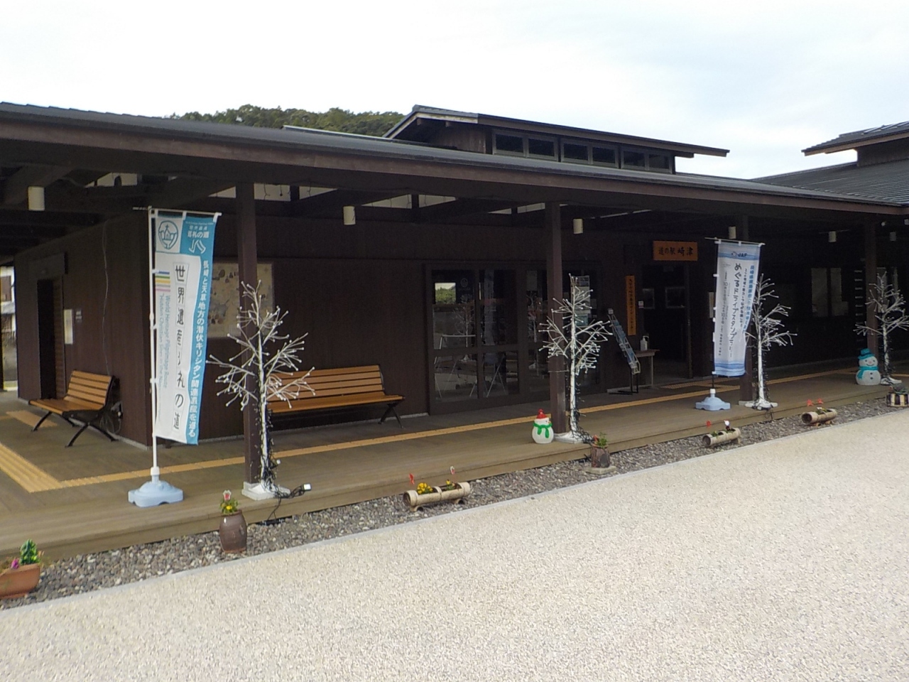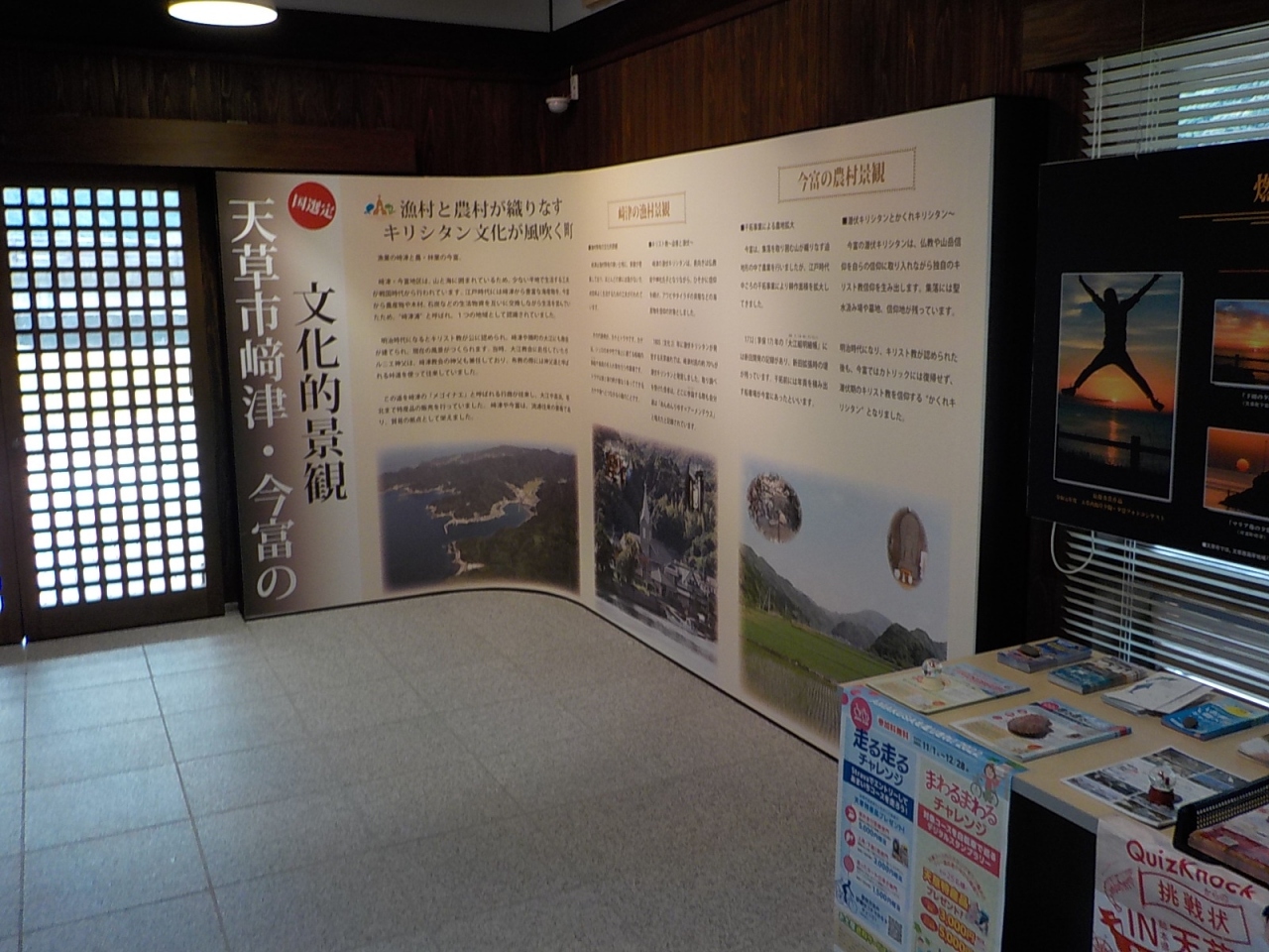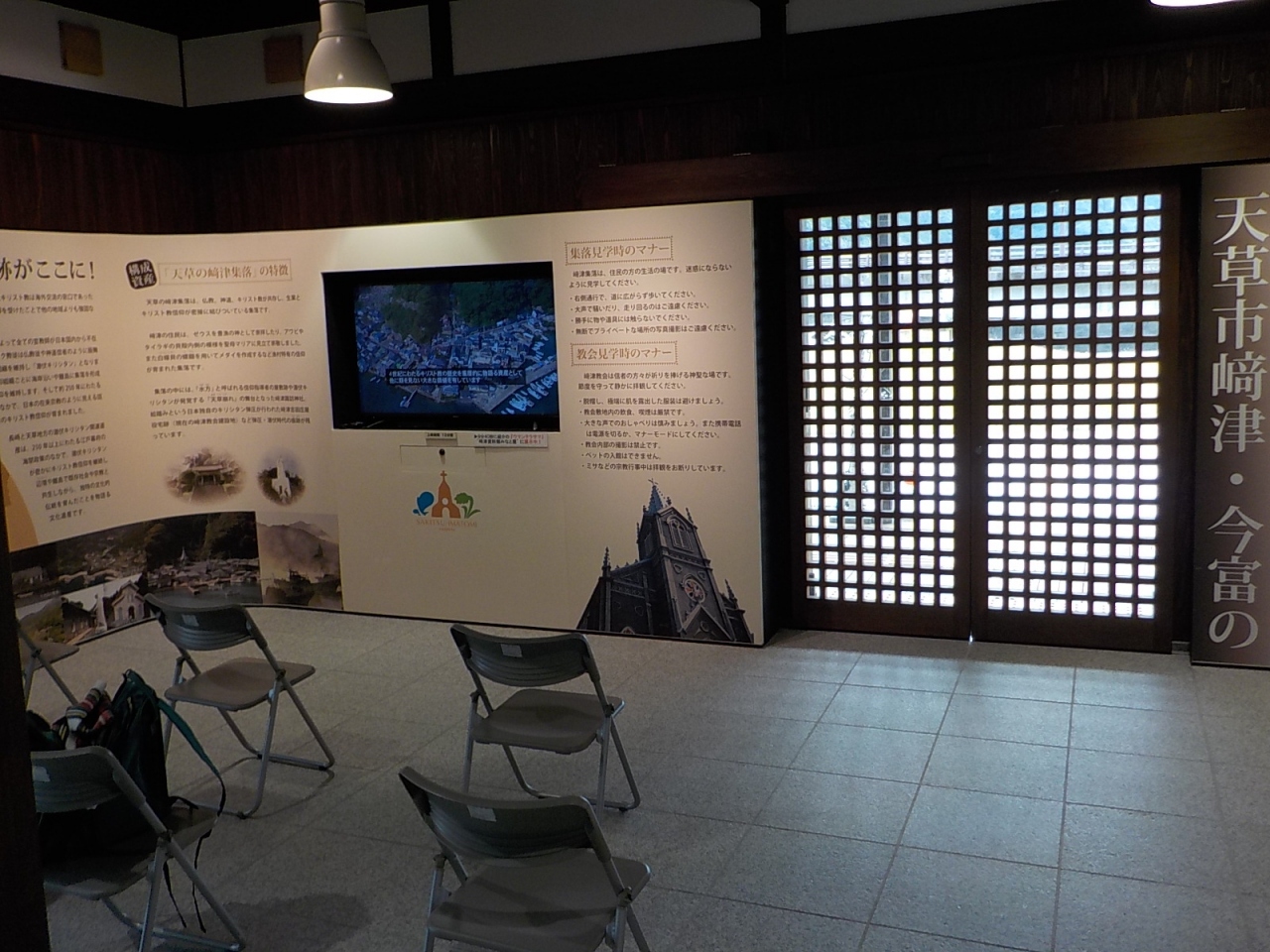 国道389号線を走り、長いトンネルを抜けると左手に崎津教会が見えてきます。ここから津集落の中に入って行くのですが、そのすぐ手前、右手にこの道の駅があります。この道の駅は、よく見かける道の駅のように、休憩所や地元物産品の販売を目的にしたものではなく、津教会などを訪れる観光客に対して、地域の歴史や文化、集落内での予備知識やマナーなどを知ってもらうためにあります。すぐに崎津集落や崎津教会などに行かず立ち寄るのが良いと思います。