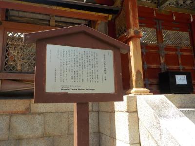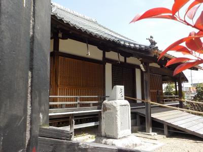 園城寺(通称三井寺)は非常に慶大が広く、大きく見て3か所に分かれています。このうち大津市役所近くにある北院に新羅明神を祀る新羅善神堂があります。周辺はすこし荒れた感じもある林のようなところを入って行くと新羅善神堂がありました。まったく人影がなく、門が閉ざされています。内部の拝観は出来そうになきので、仕方なく説明文を読むだけにしました。帰宅して調べてみると、足利尊氏が再興したといわれる社殿で、三間社流造りの国宝でした。