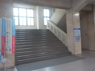 1939年に竣工した立派な車寄せがある正面玄関を中心にして左右対称に造られた鉄筋コンクリート造4階建ての滋賀県県庁舎です。滋賀県の近代建築の一つとされています。玄関の真上には塔屋を設けています。玄関ホールはかなり広く、そこから会場に上がる石造りの階段は広くて重厚な感じがします。内部は入れませんが、建物玄関だけを見ても格調のある建築物だといえる建物です。。