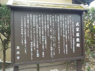 島原城に天守閣前に入場する前に行ってみました。武家屋敷は中央に生活用水用の水路がある道の両側にあります。現在は三軒の武家屋敷が公開されています。三軒に共通しているのは比較的広い敷地にちょっとした庭が造られています。建物の中は三間ほど座敷があること、その他には台所などがあります。身分に多少の差(石高が少し違います)がありますが、石高が多くはないので身分がそれほど高くない武士が住んでいたと考えられます。