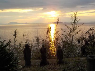 歴史遺産であるとともに有明海の彼方からのbおる朝日のスポットでもあるので、午前7時前に到着するようにして車で島原を出発しました。もちろんきれいな朝日が見られ、本丸まで朝日の中を散歩しました。ホテル真砂の前から道標に従って行けば、道に迷うことはありません。ここは日本史の授業でも習ったように1637年に島原・天草一揆(島原の乱)の舞台になった場所です。天草四郎を総大将にして、圧政に苦しむ農民たちがキリスト教の教えを信じて戦ったところです。城に立てこもった全員がなくなりました。この後、さらにキリスト教が弾圧を受け、鎖国を始めるきっかけになりました。
