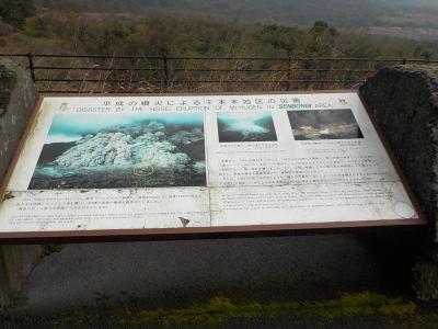 雲仙の眉山を迂回するように設けられている8kmの道路を「まゆやまロード」と言います。島原城南側にある愛野島原線を走ると、20分ほどで千本木展望所が道路の右側に突然のように現れます。駐車場は展望所のすぐ前にあるのでそこに車を駐車し、目の前の展望所に向かいます。展望所にはパネルで、火砕流の様子が分かるようになっている。それと見比べるようにしてみれば平成5年6月に起こった雲仙普賢岳による火砕流堆積物がよく理解できます。