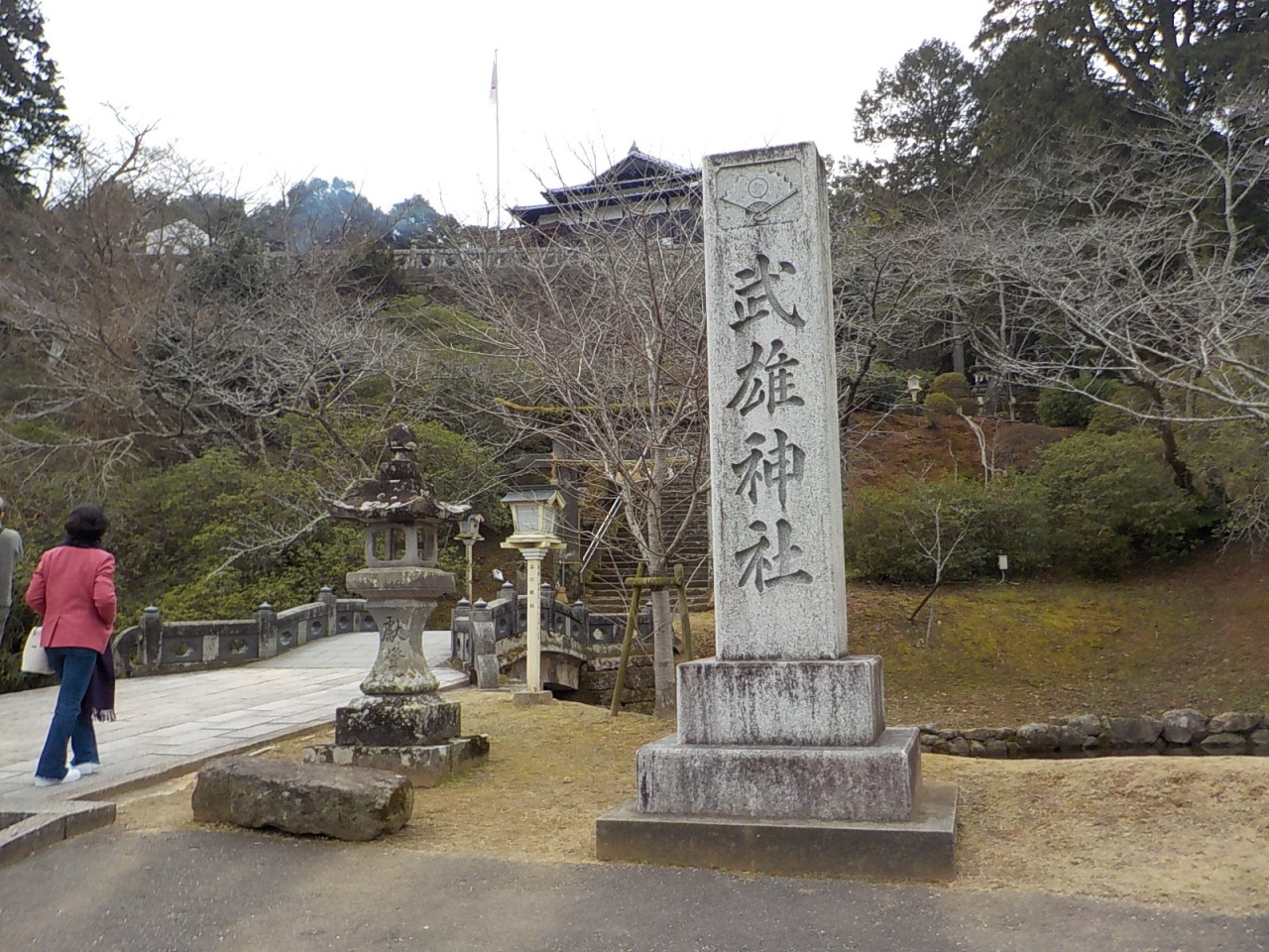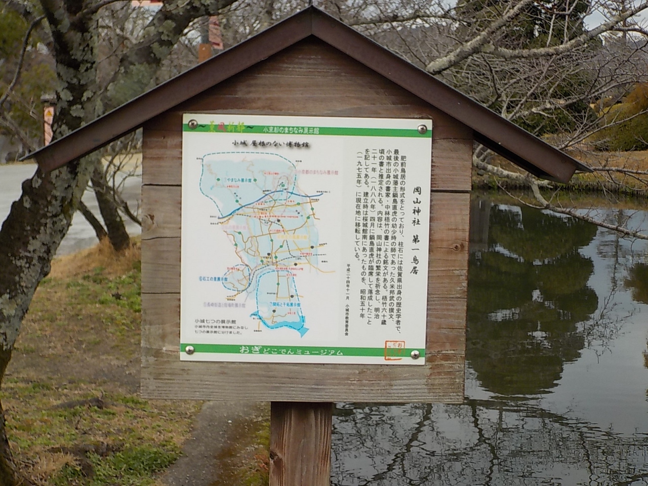 佐賀藩の支藩である小城藩の庭園内(小城公園)に鎮座する神社です。ご祭神は佐賀藩初代藩主鍋島元茂、二代藩主直能がご祭神となっています。公園に入ると池沿いに表参道があります。一の鳥居は肥前鳥居のようです。二の鳥居、石橋を渡ると本殿です。本殿前からは小城公園の景色も楽しめます。有田焼の一対の灯篭(壊されないように金網で守られています)の先が本殿です。参拝後には小城公園を一周するのがよいと思います。
