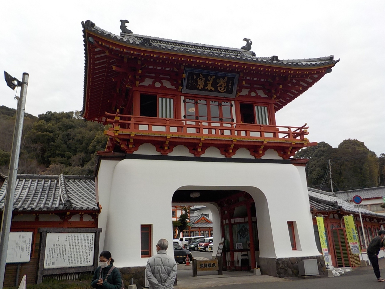 まるで子供の頃に見た龍宮城のような形をした武雄温泉の入口にある朱塗りの門です。この門は武雄温泉のシンボルで、たとえ武雄温泉に行ったことがない人でも一度は写真で見たことがあるし、楼門の姿は強く印象に残っていると思います。天平式楼門と呼ばれる形式で、釘を一本も使っていない建築物です。東京駅を設計した有名な辰野金吾氏の設計だそうです。1915年(大正4年)に完成しました。現在は国の重要文化財に指定されています。この門をくぐると元湯があり日帰りで入浴を楽しむことができる元湯があります。