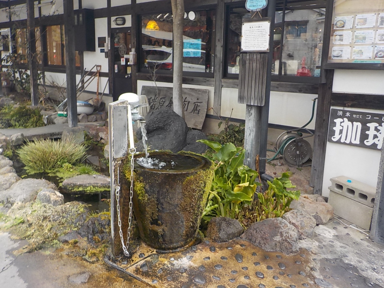 島原市役所北側森岳商店街にある自噴井戸から引水し、水飲み場を設置しています。眉山が崩壊した前からある溶岩泉です。地下水はその土地の平均気温とほぼ同じですが、この湧水も1年を通じて水温15度です。この名水は自由に汲むことができるので、地元の方がたくさんペットボトルを持って水をもらいに見えていました。一口飲んでみましたが、水質は軟水ですからコーヒーやお茶に向いていると思います。