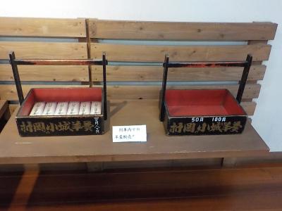 須賀神社にお参りに行ったので、神社の目の前にある村岡総本舗で羊羹を土産に購入しました。すぐ隣にある資料館はぜひ見てほしいところです。まず1階でビデオで羊羹の歴史、材料、製法などがよく分かるビデオで概要を掴みます。この時に抹茶と羊羹の無料サービスがあります。続いて2階に上がると、羊羹の歴史、材料、製造機械、梱包材、小城駅で羊羹を販売していた時の容器などもありました。なかなか興味深く拝見できます。