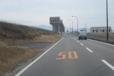 - 途中で水門がありますが、島原方面へ走るときは左側の景色は堤防で邪魔をされてほとんど見えません。