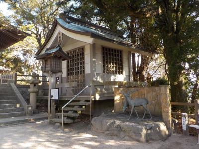 志賀島の入口にある神社です。志賀島までフェリーで行くと、フェリー乗り場のすぐ近くです。一の鳥居から一部商店が並ぶ参道を歩きます。二の鳥居からは階段を登っていくことになります。ここには御潮井の砂(浄め砂)があるので、これで身を清めます。やがて楼門の前に着きますが、手前右側には参拝者用の駐車場から直接上がってくる石段の道があります。楼門前には石の太鼓橋がありますが、渡ることはできません。橋の下側に橋が落下しないように補強材が入っています。楼門をくぐると境内に入ります。少し右側には鹿の角を奉納した鹿角庫があります。拝殿はその先の階段を上がったところです。また遠く伊勢神宮や皇居を遙拝できるという遙拝所があります。ここにある亀石は神功皇后が三韓出兵に際し祈願をしたところ、亀に乗った志賀明神と勝馬明神が出現したという故事にちなみ後世奉納されたと言われているものです。見どころも多い志賀海神社はぜひ訪れてみたいパワースポットでした。