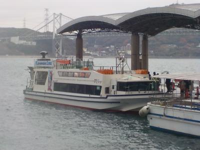 下関市の有名な唐戸市場前の唐戸桟橋と北九州市門司港桟橋の間に運航している便利な連絡船です。唐戸桟橋からは毎時0,20,40分に門司桟橋からは毎時10,30,50分に船は出ます。所要時間はわずか5分です。短い乗船時間ですが、門司桟橋から出発すると右手に関門橋、左手に宮本武蔵と佐々木小次郎が決闘をした巌流島を見ることができます。関門トンネル人道とはずいぶん場所が離れているので、目的地によってはこの連絡船を使うのが便利になります。自分はこの連絡船で唐戸市場グルメ旅をしました。