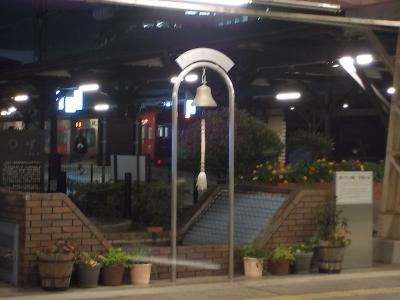 重要文化財である木造2階建建築のJR門司港駅駅舎です。その長い歴史に中で駅構内にもいろいろな歴史的な遺産があります。その一つが駅ホームに立つ「旅立ちの鐘 幸福の泉」です。列車の出発合図の鐘として造られたそうで、その後、列車や乗客の安全の鐘として役割を果たしてきました。JR門司港駅が復元修理されるとともに、昔の面影を残す駅舎にふさわしいとして平成21年この鐘も復旧したそうです。幸福の泉にコインを投げ入れると夢がかなうといわれています。