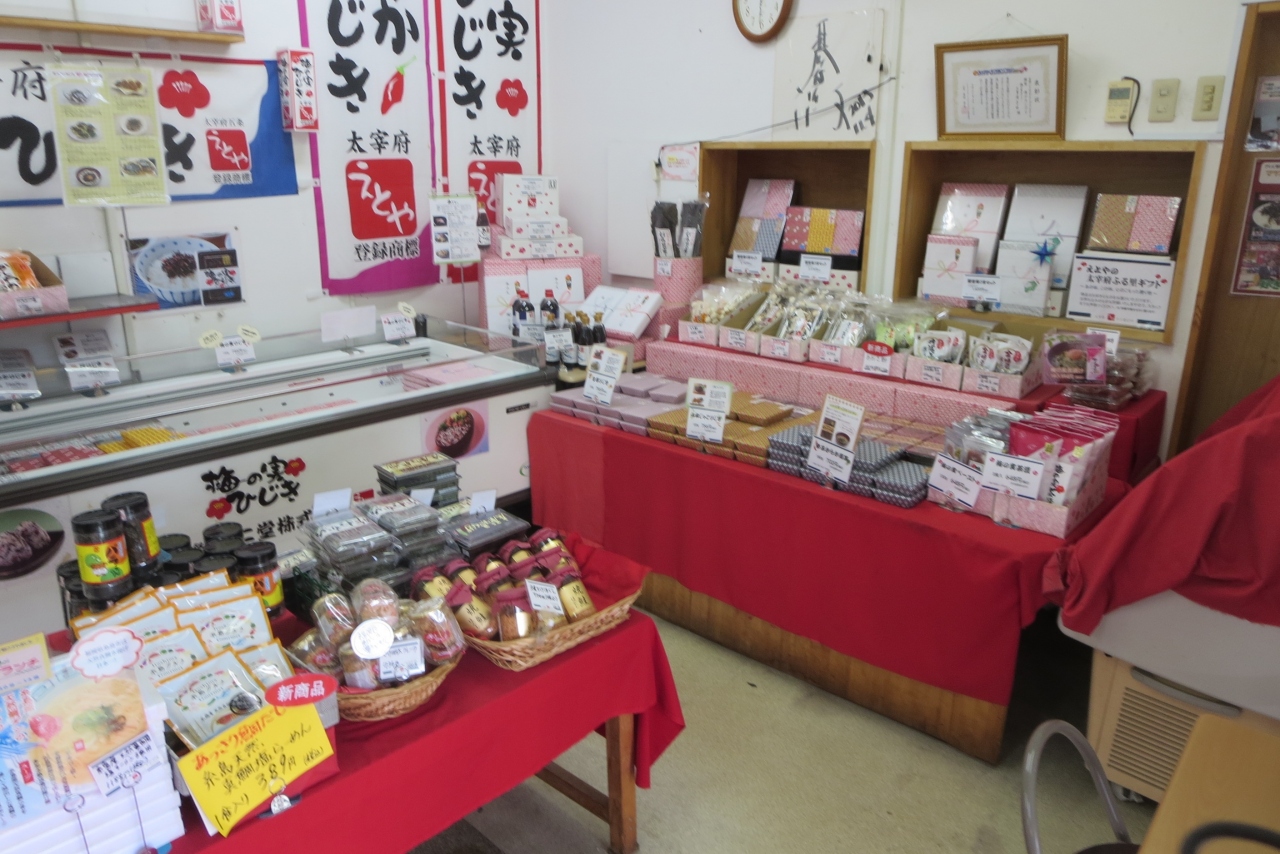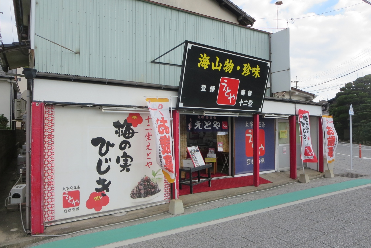 西鉄太宰府駅から太宰府の参道を歩き、一の鳥居で右に曲がると左手にあります。テレビでもよく宣伝している梅の実ひじきをメインの商品にしていて、梅の代わりにカツオ、山椒とジャコ、生姜、辛子高菜を加えたものもあります。熱いご飯にかけていただくと美味しいのでよく買い求めます。梅の実ひじきに入っている梅は酸っぱさは少なく肉厚でコリコリした食感です。少し甘みを感じるひじきの味がよいアクセントになっています。