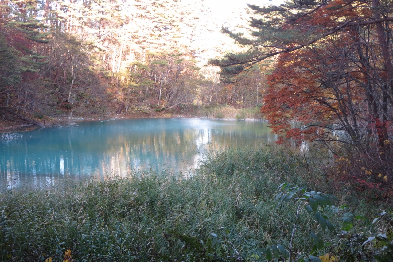 磐梯山の噴火の土石流でできた五色沼湖沼の中で最も小さな沼です。名前のとおり沼の水はきれいな青です。裏磐梯ビジターセンターからだと遠いので、裏磐梯物産館から歩くのが近いです。ゆっくり歩いて15分ほどで行けます。自分たちは五色沼自然探勝路をすべて歩きたかったので、裏磐梯ビジターセンターから歩きました。約3.5㎞近くあるのではないかと思います。