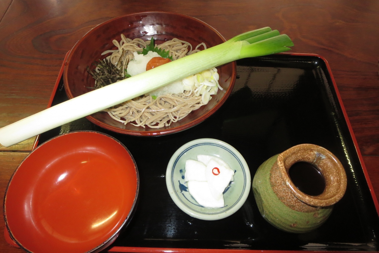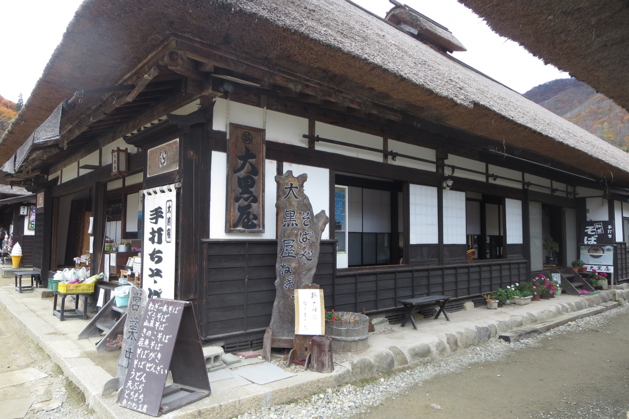 会津若松市からレンタカーで国道121と3219号線を約1時間ほど走りました。大内宿の入口にある有料駐車場に駐車して街並みを見学しながら歩きました。江戸時代には現在の会津若松市と日光今市を結ぶ重要な街道の宿場町としてであったところです。当時の面影を現在に残す茅葺屋根の民家が街道沿い両側に建っています。街道や民家はよく整備されていて大変きれいな景観です。初めに大内宿の一番奥にある大内宿見晴台に上ります。急な階段を80段ほど登るときれいな大内宿の街並みが見られます。続いて街道の両側にある民家を見ながら土産物の物色をしました。さいごに名物「ネギそば」をいただきました。コシのある美味しい蕎麦ですが、ネギを箸代わりにしていただきます。ちょっと食べにくいですが、蕎麦は美味しかったです。ただネギはだんだん辛くなってきて、途中でギブアップしました。