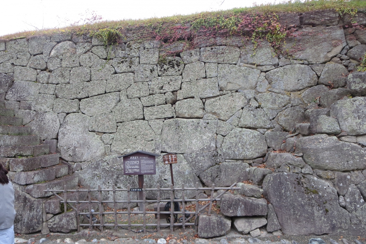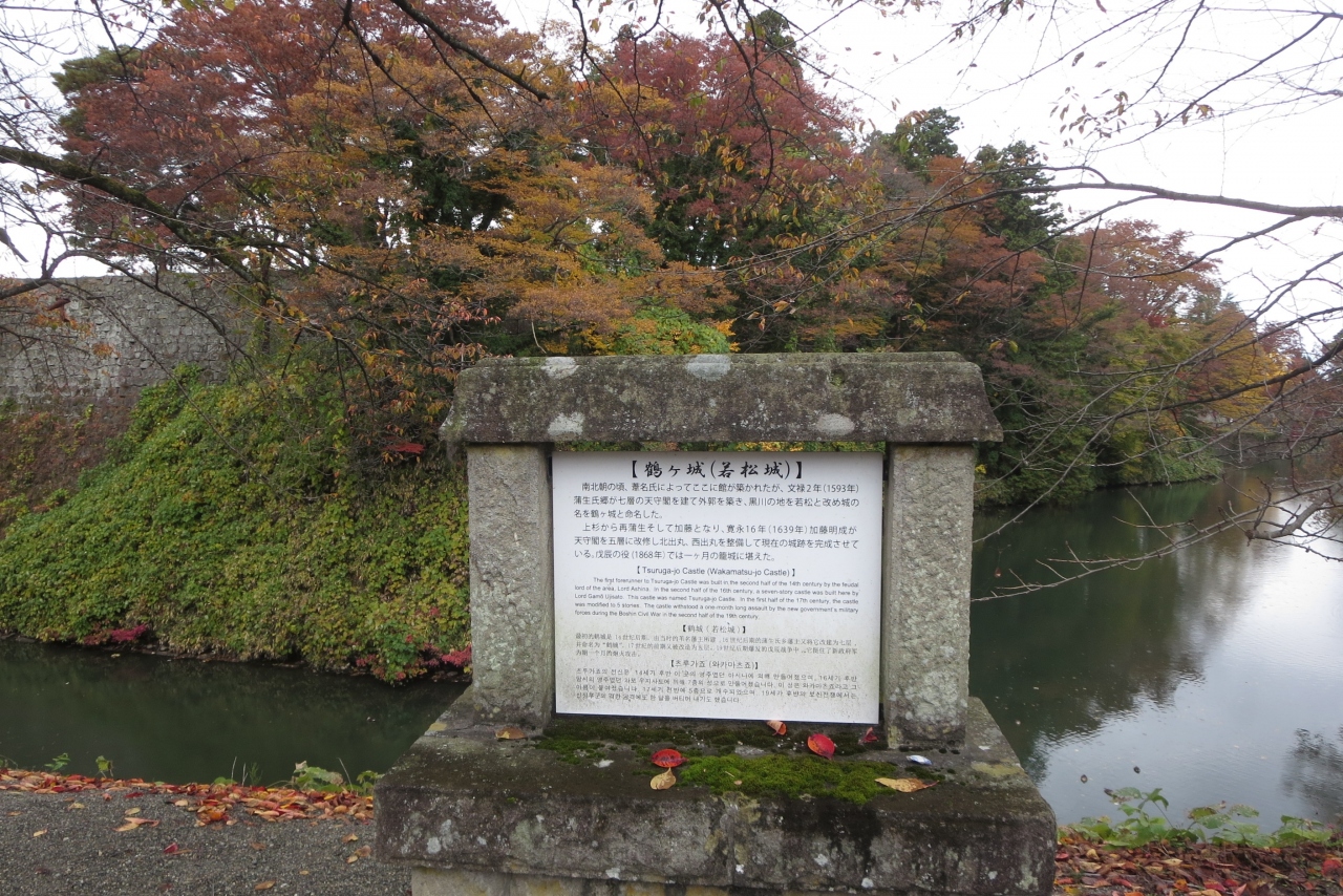 会津若松の観光の中心ですが、鶴ヶ城天守閣のリニューアル中でしたので、残念ながら天守閣に登れませんでした。仕方なく鶴ヶ城公園を散策するにとどめました。二の丸公園から朱塗りの欄干を持つ廊下橋を渡り、武者走りの石垣を見たあと、天守閣に対面しました。最後に廊下橋右手にある高石垣を見てあっけなく鶴ヶ城観光は終わりました。次回はリニューアル後にぜひ訪れるようにします。