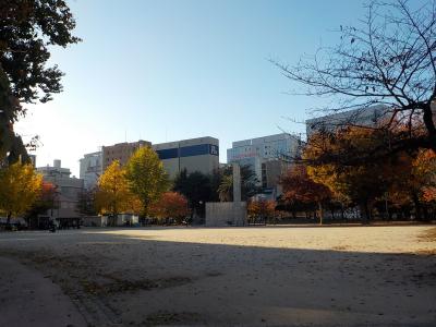 福岡の上川端商店街の東側にある広い公園です。春は桜の名所になりますし、コロナで自粛をしていましたが、今年秋には3年ぶりにオクトーバーフェスタ(ビールのイベント)が開催された場所でもあります。一帯はビジネス街ですが、その真ん中にこれほど大きな公園があるのは珍しんじゃないでしょうか。平日のランチタイムにはお弁当を開くサラリーマンの姿もよく見かけます。公園には福岡大空襲の戦没者慰霊碑があります。