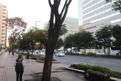 - 博多には珍しい、片側4車線の大通りです。また両側に幅の広い歩道があります。呉服町交差点から北側にはtっ勇王分離帯にヤシが植えてあります。