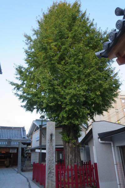JR博多駅から北に10分ほど歩くとある若八幡宮は厄除けの神社として全国に有名な神社です。別名「厄八幡」とも呼ばれています。「若」と「厄」は何となく音が似ているなと思いつつ境内に入りました。すぐに90度右に曲がらないと突き当たりそうな狭い境内です。大きなイチョウの木はご神木のようです。さらに進むと拝殿があります。拝殿の周りを一周すると、力石(重さ180.2kg)があります。江戸時代にはこの石を持ち上げた人がいたそうですが、それにしても凄い力の持ち主だなと感心しました。