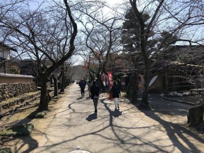 春の桜、秋の紅葉、この時期を外さないと秋月は大変な混雑になります。特に杉の馬場付近の駐車場は駐車場にたどり着くまでに時間がかかります。こういう時には、ちょっと違う場所で車を停めて歩くのが早く行く方法になると思います。今回はこの時期から外れていたのですぐに駐車場に着きました。九州の小京都といわれる秋月城下町のメインは杉の馬場です。秋月城跡まで真直ぐに延びる約500mの通りですが、当時は馬術の稽古に使われていたようです。この通りの両側には多くのの桜があります。すでに落葉していて残念でしたが、食べ歩きを楽しむことができました。