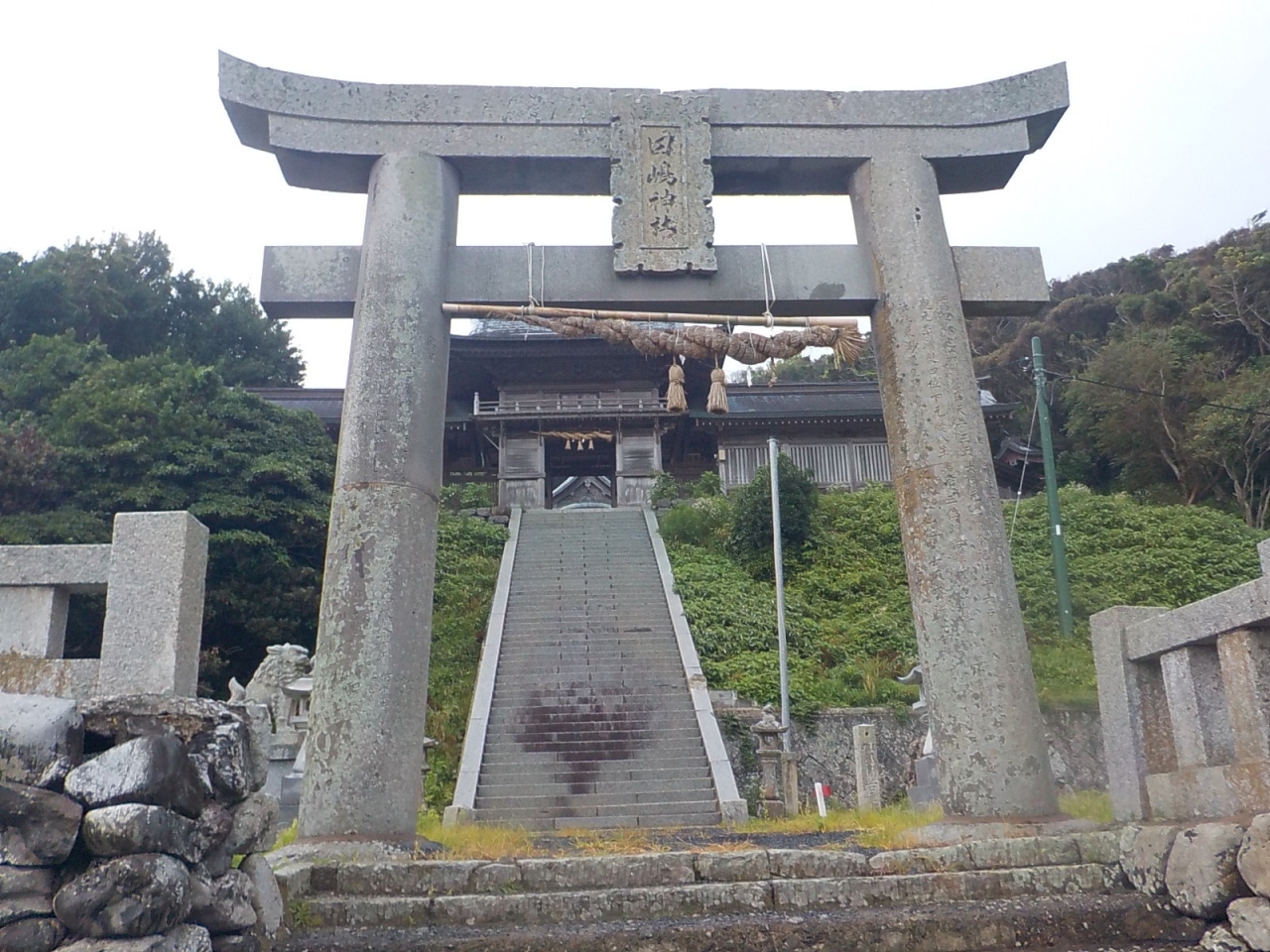 - 海辺にある鳥居からまっすぐ階段が本殿に至る参道は印象的です。