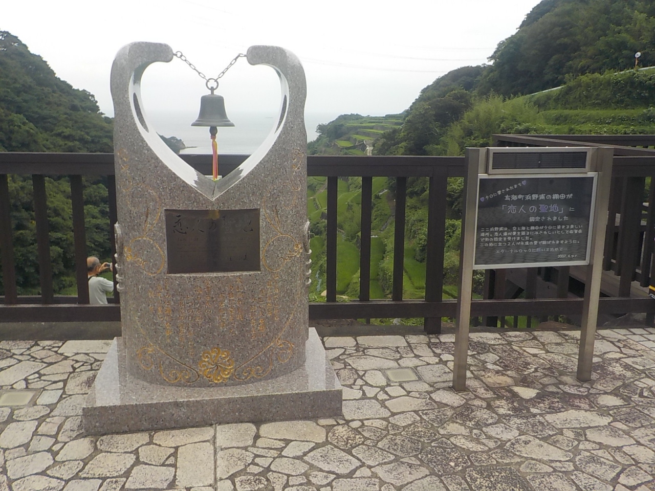 国道204号線を南下し玄海町に入ると右手の脇道に入った所にあります。急傾斜地に見事に整備されて棚田があります。展望台があるのでそこから見ると、玄海灘と棚田が同時に楽しめます。この展望台の奥には「恋人の聖地」と呼ばれる一角があり屋根まで設けられています。金属網がありそこには永遠の愛を誓う恋人たちが南京錠を取り付けています。そばには恋人の聖地と書かれたモニュメントもありますので記念撮影によいと思います。