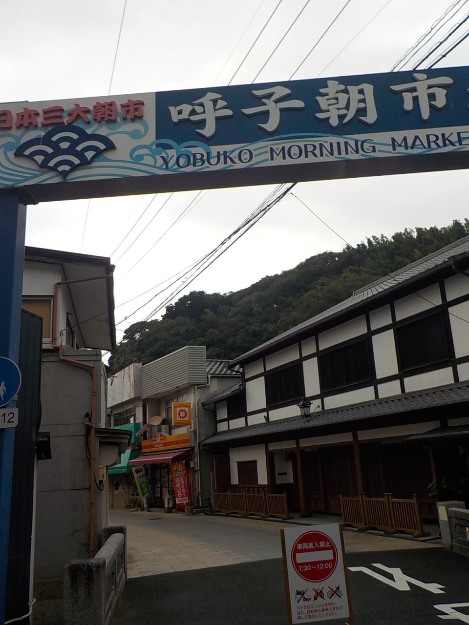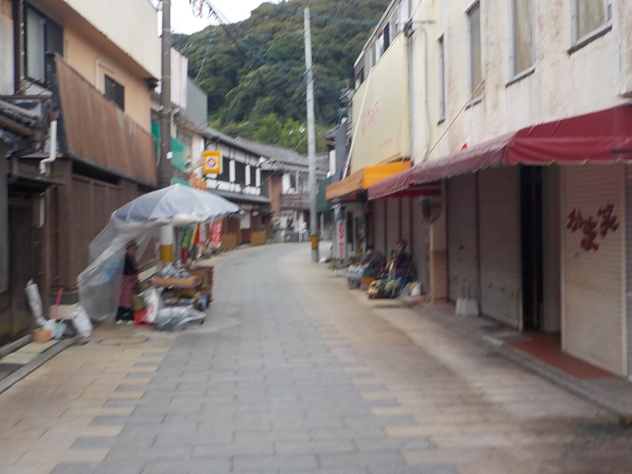 呼子の朝市通りは200mほどあり、通りの両側には50店ほどが並ぶそうです。訪れたのは平日、そして雨模様の日でしたのでお店の数が少なくガッカリしました。夏場ですから自宅まで持ち帰れるように干物を購入しました。試食させていただいたアジの干物は塩加減が丁度よく大変美味しかったです。