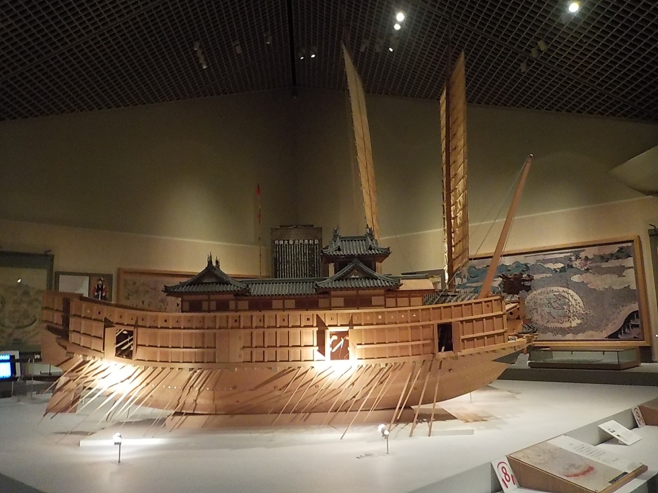 ずいぶん前に名護屋城跡の前を通ったことがありましたが、ぜひ見てみたいと思っていましたがやっと行くことができました。その間にこの博物館ができていましたので、ラッキーでした。2階の展示場迄階段を上ります。館内は時計回りに時代を追って資料が展示されています。朝鮮半島との交流の歴史が文禄・慶長の役の前(縄文時代から)、文禄慶長の役、その後というような構成で展示されています。特に人気がある展示は、復元された秀吉の黄金の茶室と名護屋城跡関連の展示だと思います。