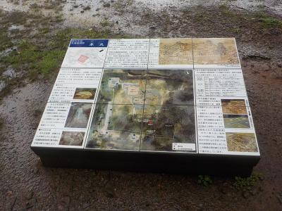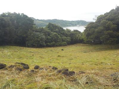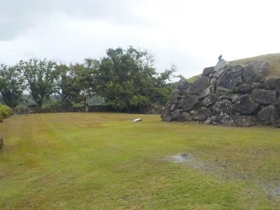 - 一面の傾斜地の草原に石垣の石が残る程度のものです。