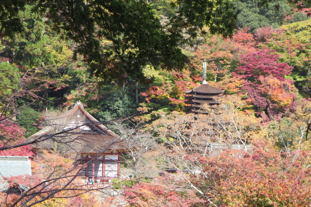 - 見事な紅葉と女人高野らしい小さな五重塔が印象的です。