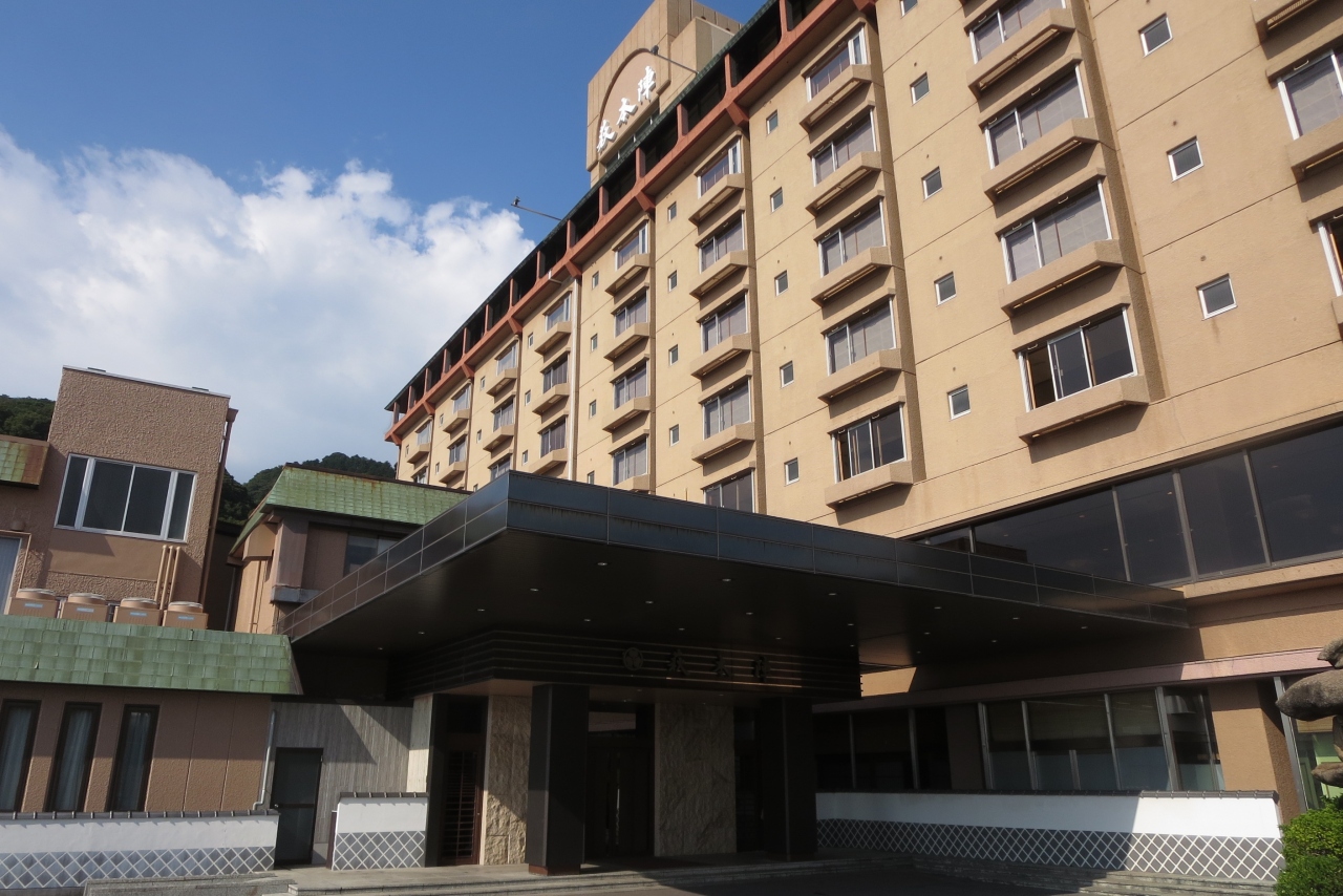 萩の中でも大きなホテルの一つです。場所は松陰神社のすぐ北側にあります。徒歩で行くには玄関まで坂道を登ることになりますが、車であれば玄関そばまの駐車場が利用できれば、坂を登ることはありません。駐車場整理の方やフロントのは非常に親切で、しっかり案内していただけました。部屋は10畳くらいの和室で、ソファーのある縁側のようなところからは萩の景色がきれいです。料理は特別感はありませんが、品数、味ともに満足できるものです。各テーブルに対して目配りがしっかりできていて、料理がタイミングよく出してもらえます。お風呂は大浴場を中心にして、左右に廊下のようなものが繋がっています。この廊下に沿って色々なタイプのお風呂が並んでいますので、湯巡りするのも楽しいかなと思います。屋上にも萩の景色を見ながら入れる足湯があるそうですが、こちらに入っていません。
