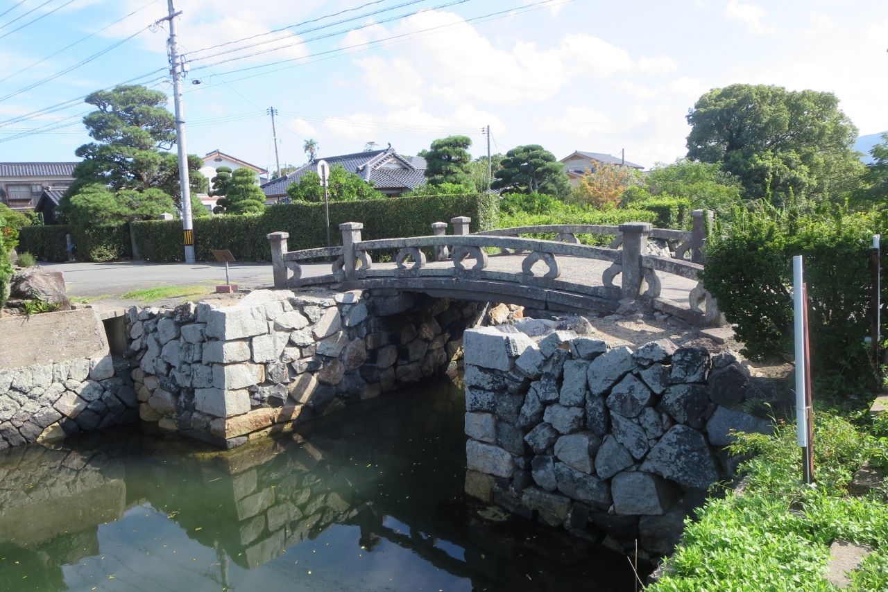 平安橋は萩城三の丸への出入口であった南の総門にあった外堀に架けられた橋です。萩城の防御面からも非常に重要な場所になります。橋は萩城の外堀ができた時には木橋でしたが、江戸時代中期に玄武岩で造られていて、全長6m、幅4mの小さな橋です。この辺りは地盤がよくないので、たとえ地盤が沈下することがあっても箸が大丈夫なように特殊な構造(専門的にはゲルバー橋)にしてあるそうです。