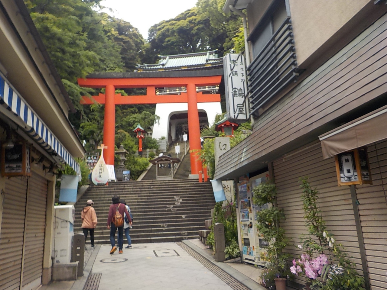 - 江島神社辺津宮までは階段を上らなくてはなりません。足が心配な方はエスかーがあります。